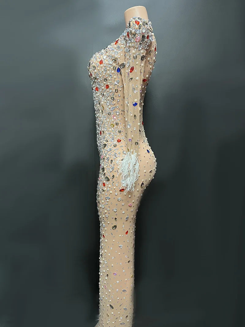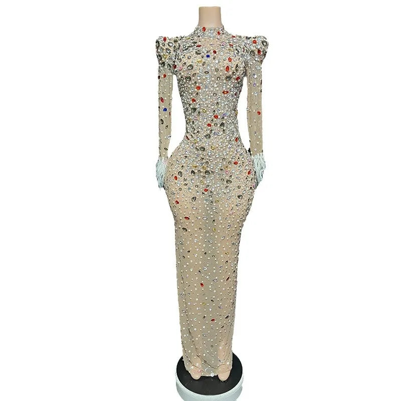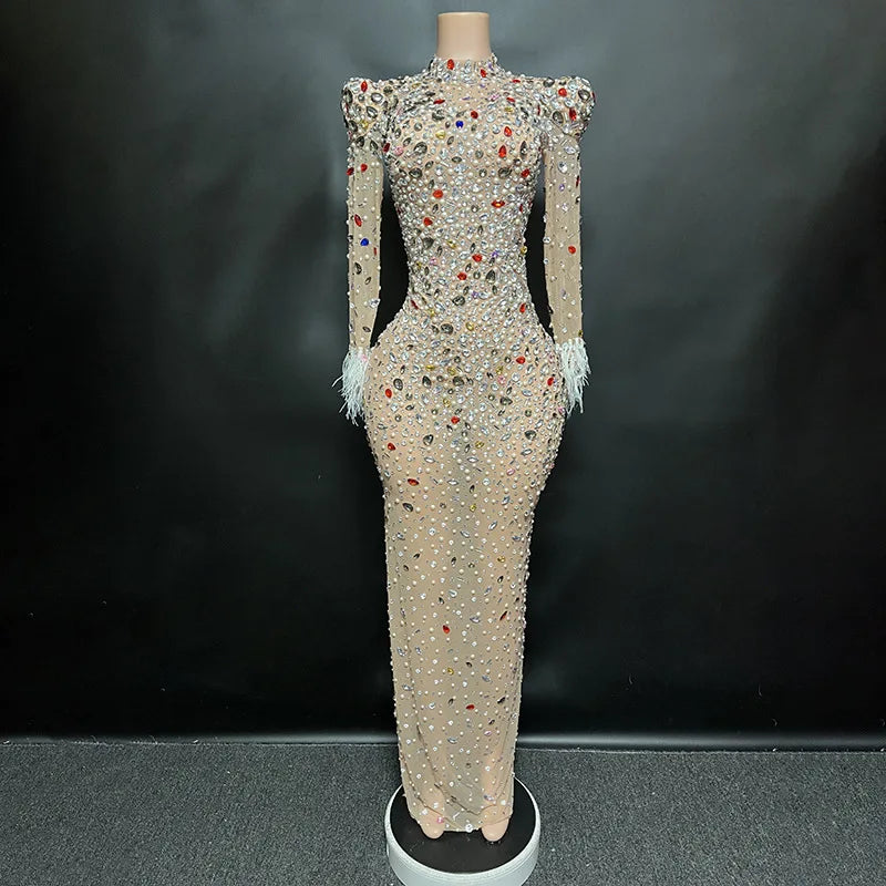 Sparkly Women Clothing Luxury Birthday Dress Woman Rhinestone Diamond Stage Show Outfit Celebrity Maxi Bodycon Dress Party Dress