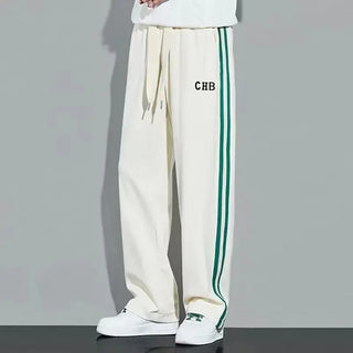 Fleece Thick Warm Straight Casual Pants Men Autumn Winter New Patchwork Striped Drawstring Waist Loose Versatile Sports Trousers