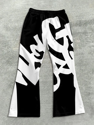 Men's Casual Street Style Trendy Cross Print Fashionable Slightly Flared Black and White Color-Block Design Sweatpants Men Pants