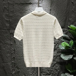 Vertical Jacquard Knitted Short-sleeved Polo Shirt Fashionable Trendy and Personalized Versatile Casual Lapel T-shirt