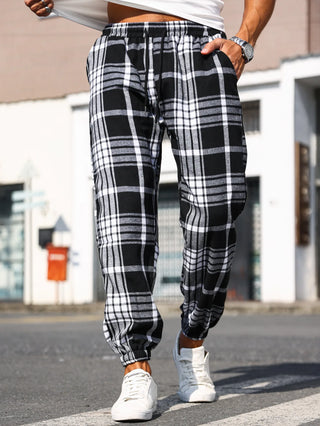 Men's Plaid Print Cuffed Casual Trousers Comfortable Sleepwear Pajamas Pants for Relaxed Style