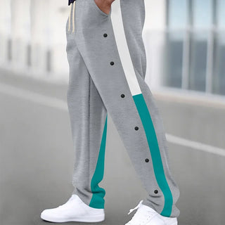 Men's Color Block Drawstring Sports Pants Loose Fit Straight Leg Casual Spring Autumn Street Fashion