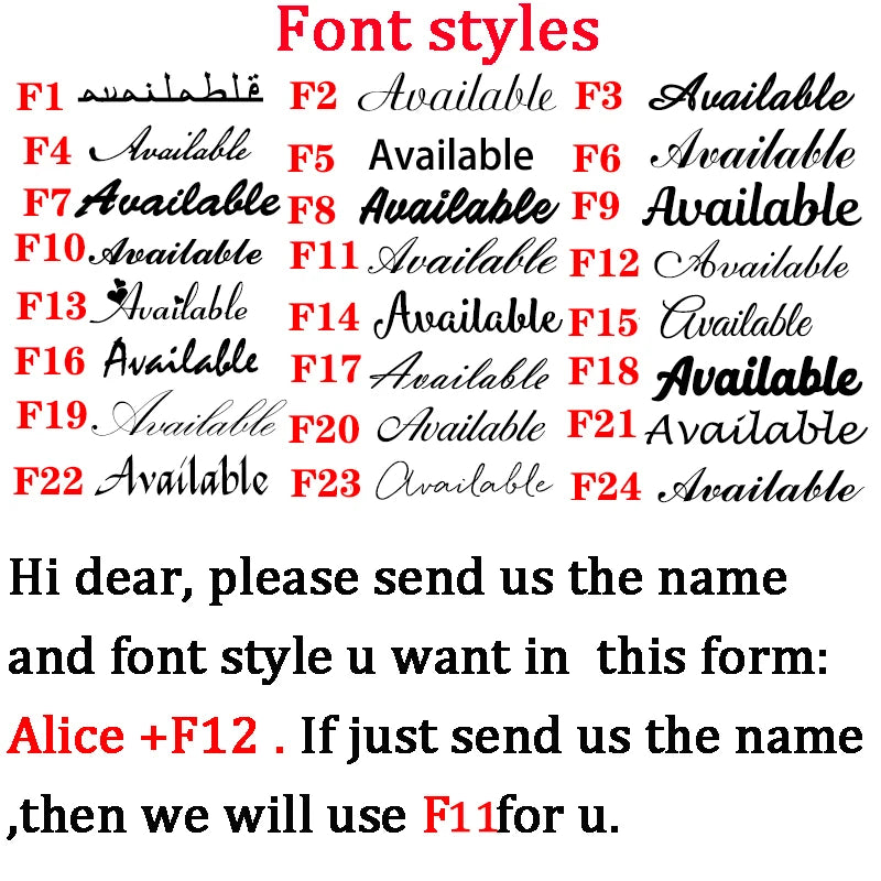 2.Please leave your name and font when you pay.(such as:Alice+F12)