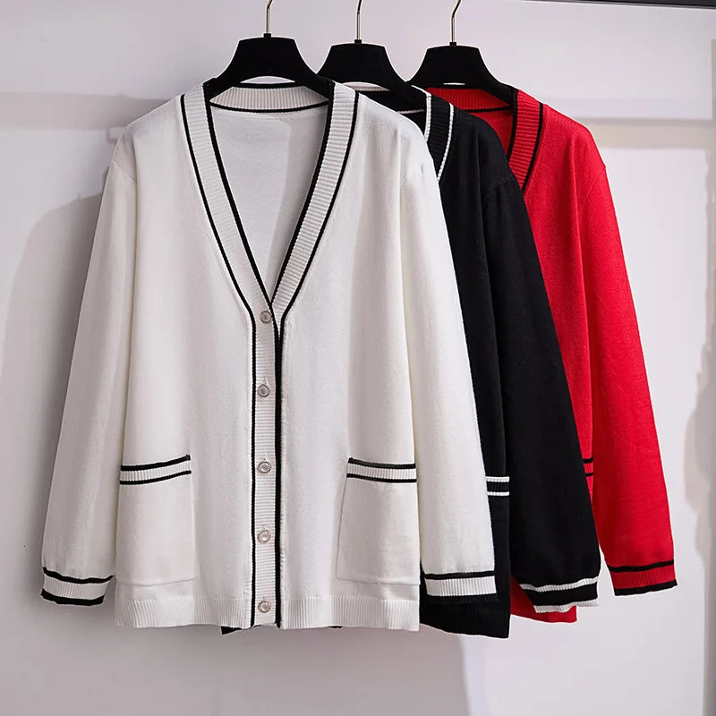 Suéter tipo cárdigan holgado de cuello en V para mujer, talla grande de 170 kg, busto de 160, estilo fragante pequeño, de punto, para otoño, 5XL, 6XL, 7XL, 8XL, 9XL