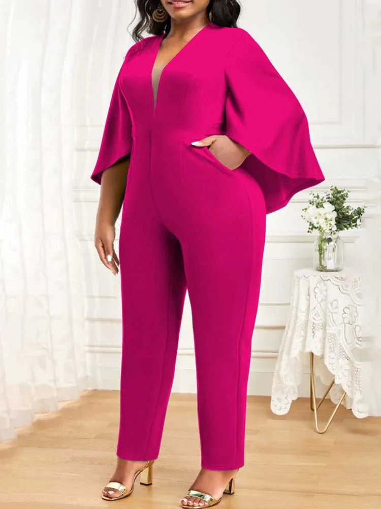 Jumpsuits for Women Autumn Batwing Sleeves Jumpsuit Ladies Elegant Office Formal Plus Size Sexy Jumpsuit Wholesale Dropshipping