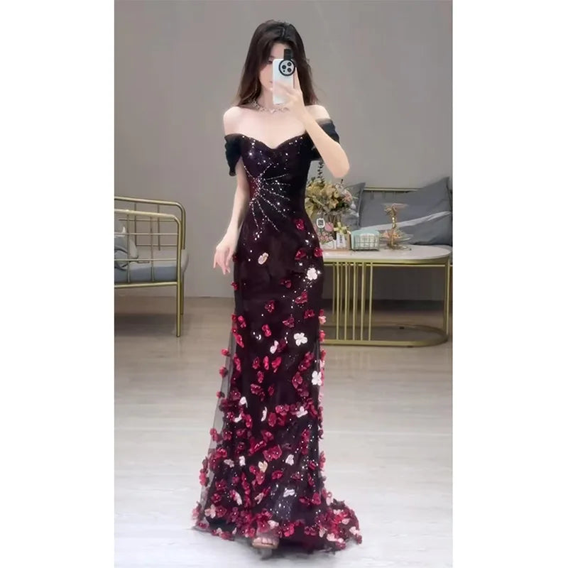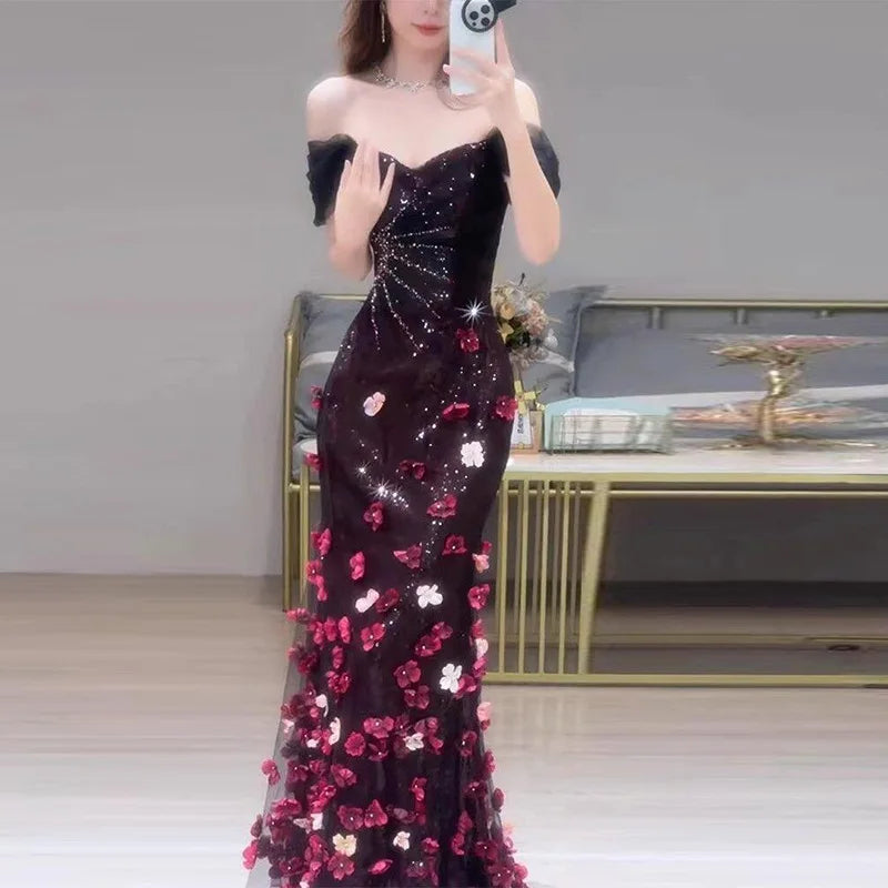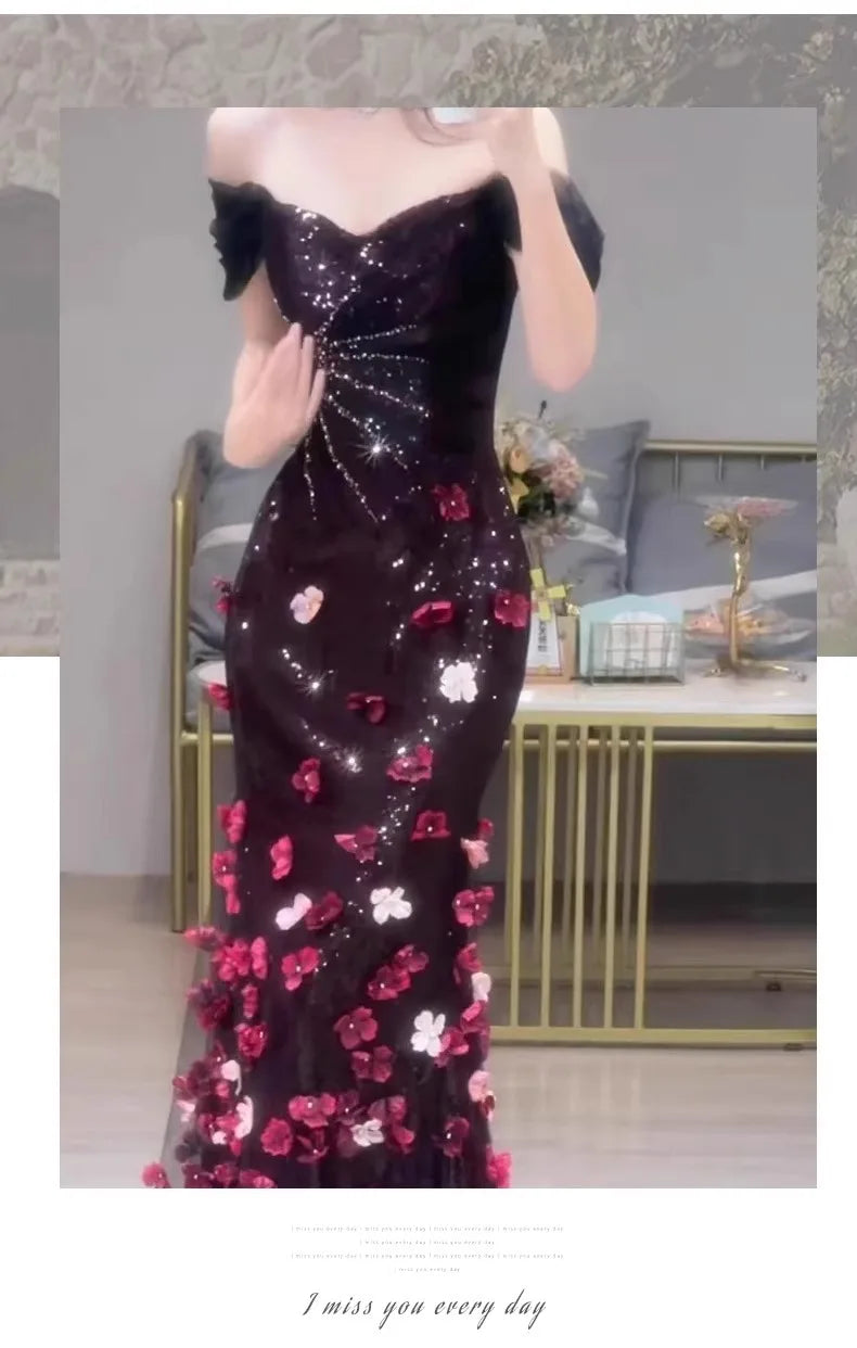 Wedding Engagement Reception Flower Sequin Dress Presenter Evening Dresses Sequin Evening Gown Vestidos De Quinceañera Party