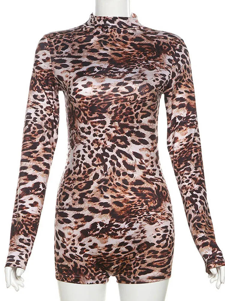 Weird Puss Leopard Print Romper Women 2024 Autumn Trend Hipster Long Sleeve O-Neck Skinny Stretch Streetwear Sexy Playsuits