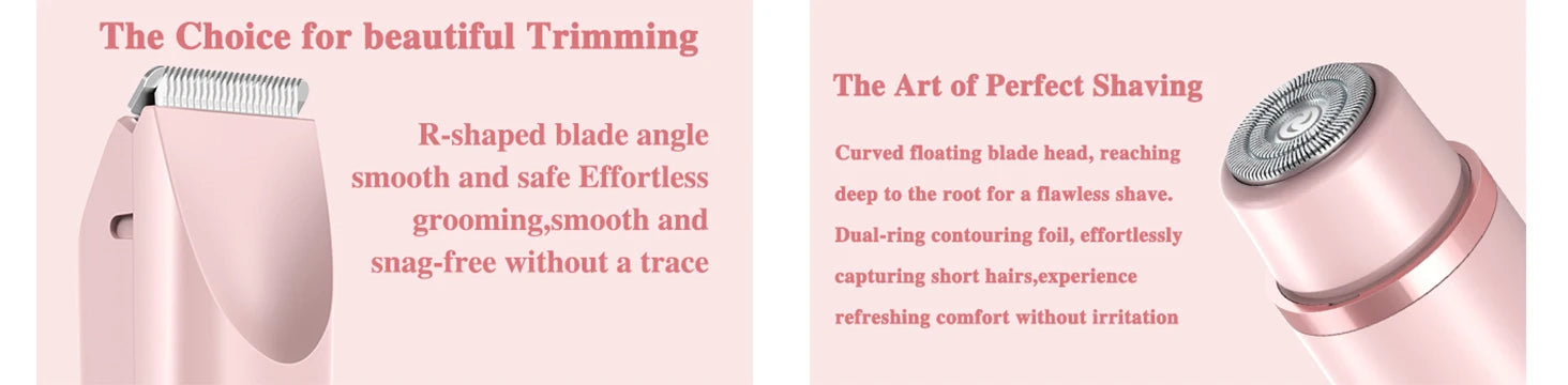 2 in 1 Dual-Head Painless Women Electric Razors Bikini Trimmer Wet Dry Use for Ladies Pubic Hair Detachable Head Electric Shaver