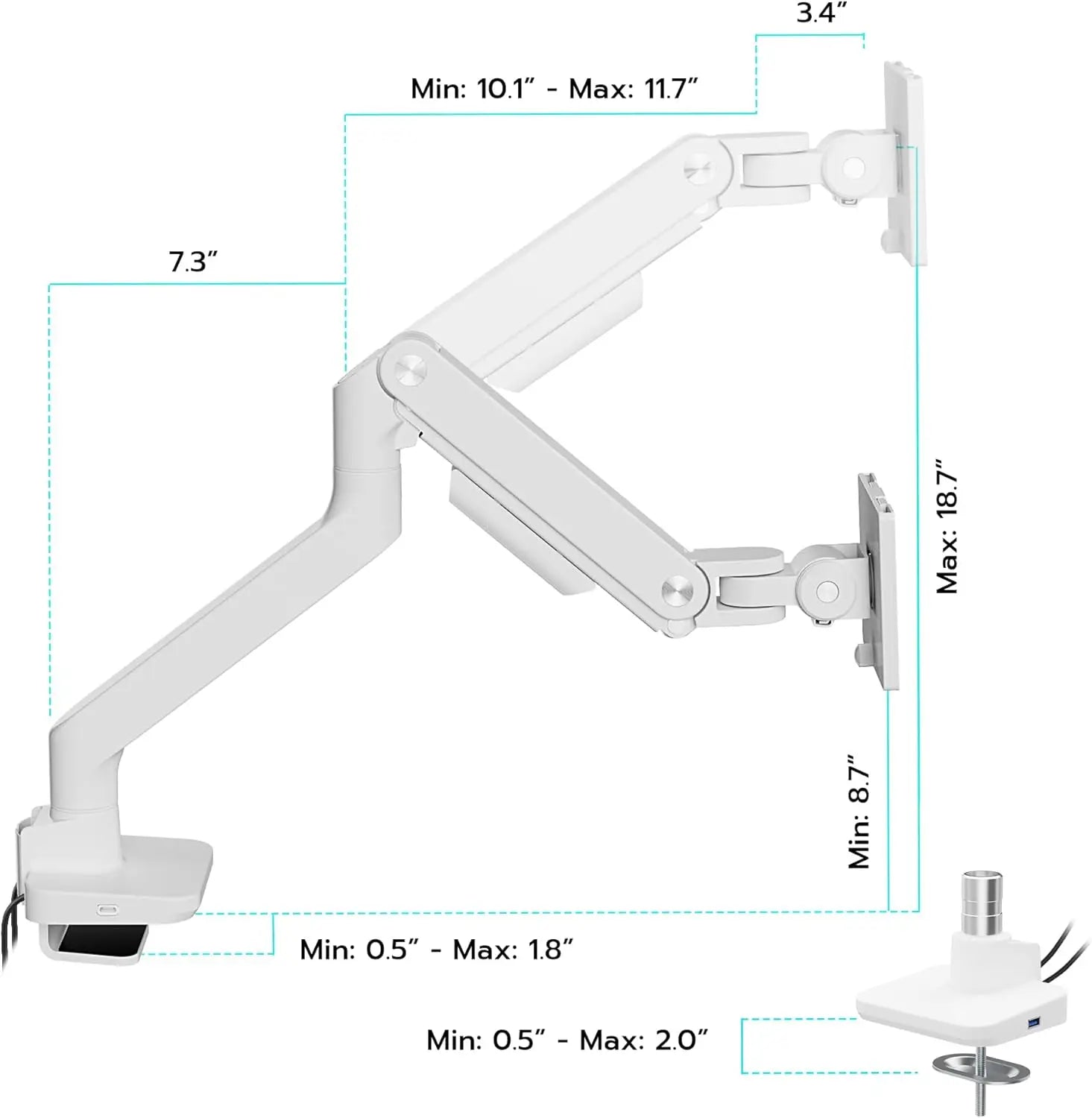 inch Ultrawide Monitor, Holds 44 lbs, Adjustable Gas Spring Monitor Arm Desk Mount with Clamp and Grommet Base, White