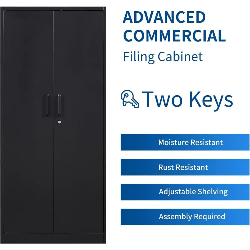Metal Storage Cabinet-71” Tall Steel File Cabinets with Lockable Doors and Adjustable Shelves-Black Steel Storage Cabinet for Ho