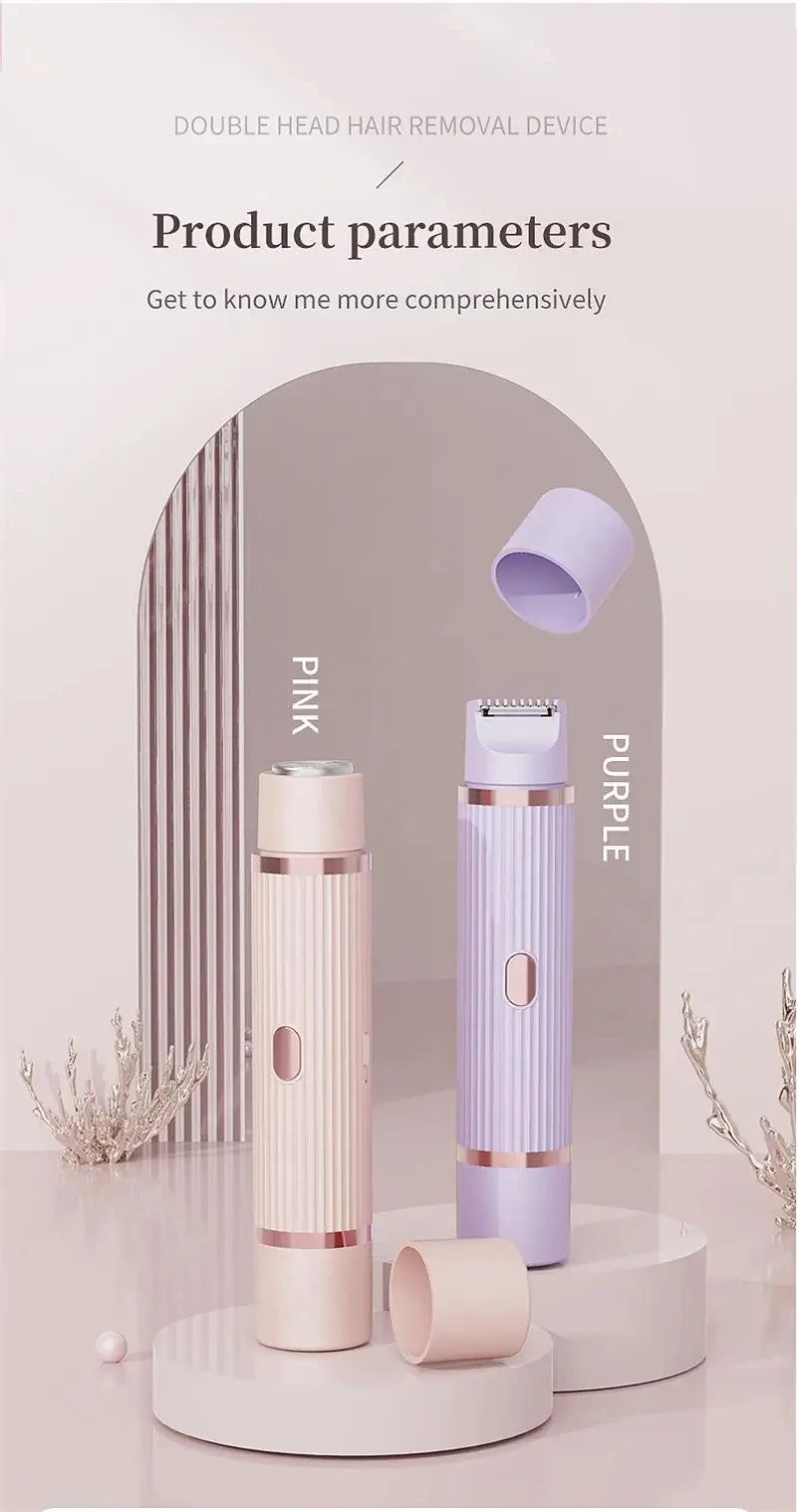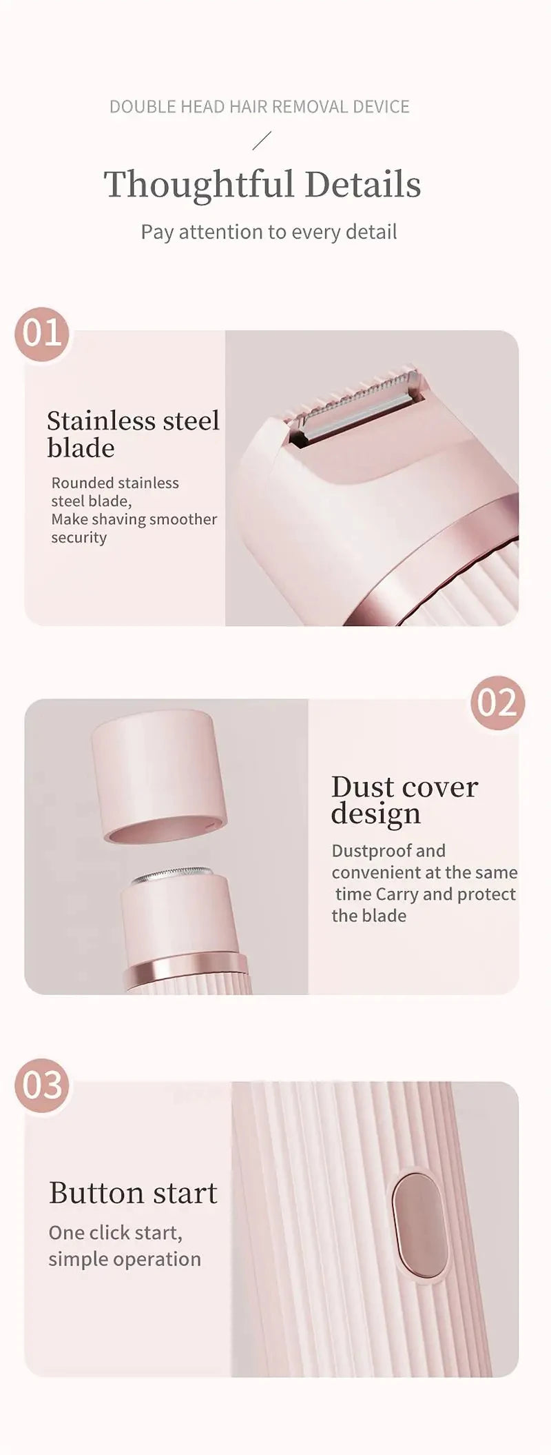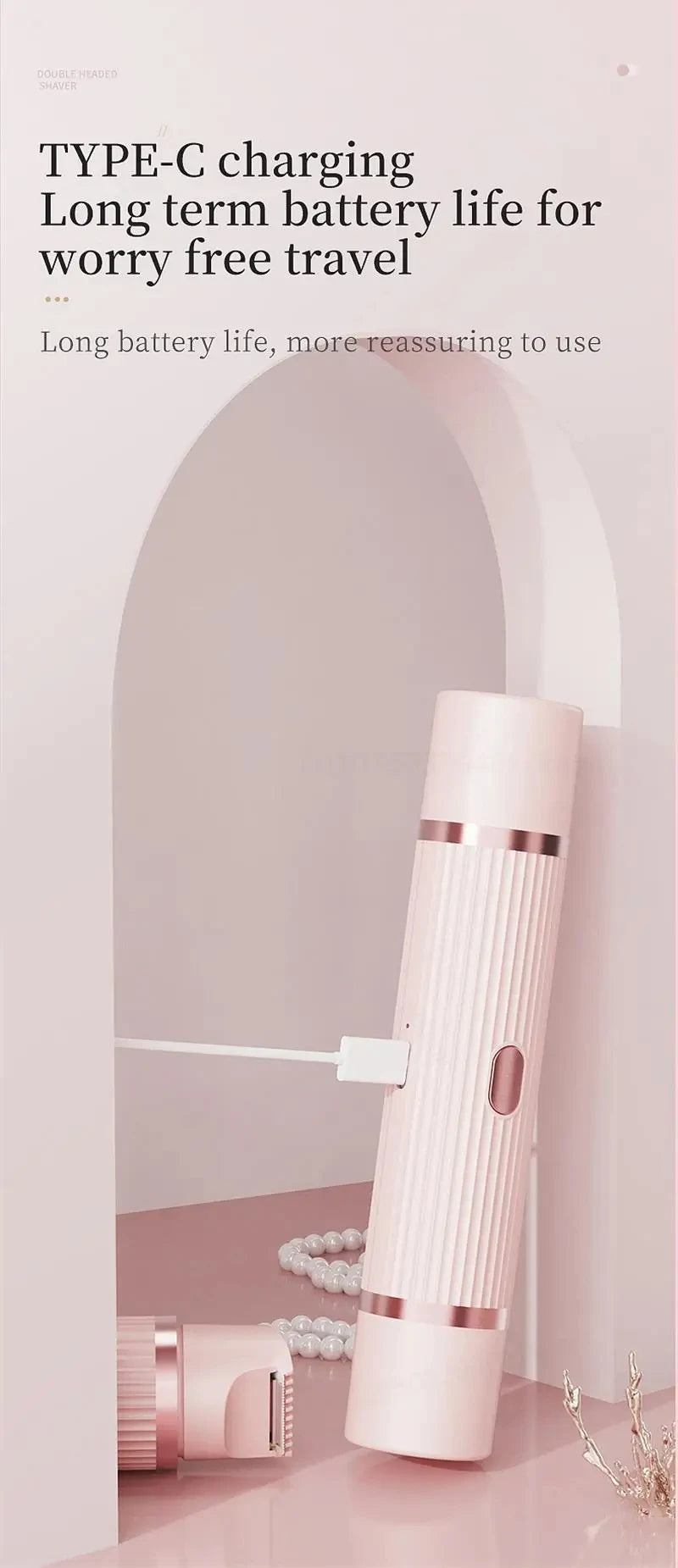 Waterproof 2in1 Electric Shaver for Women Bikini Hair Trimmer Wet Dry Use Dual Head Detachable Cordless Rechargeable