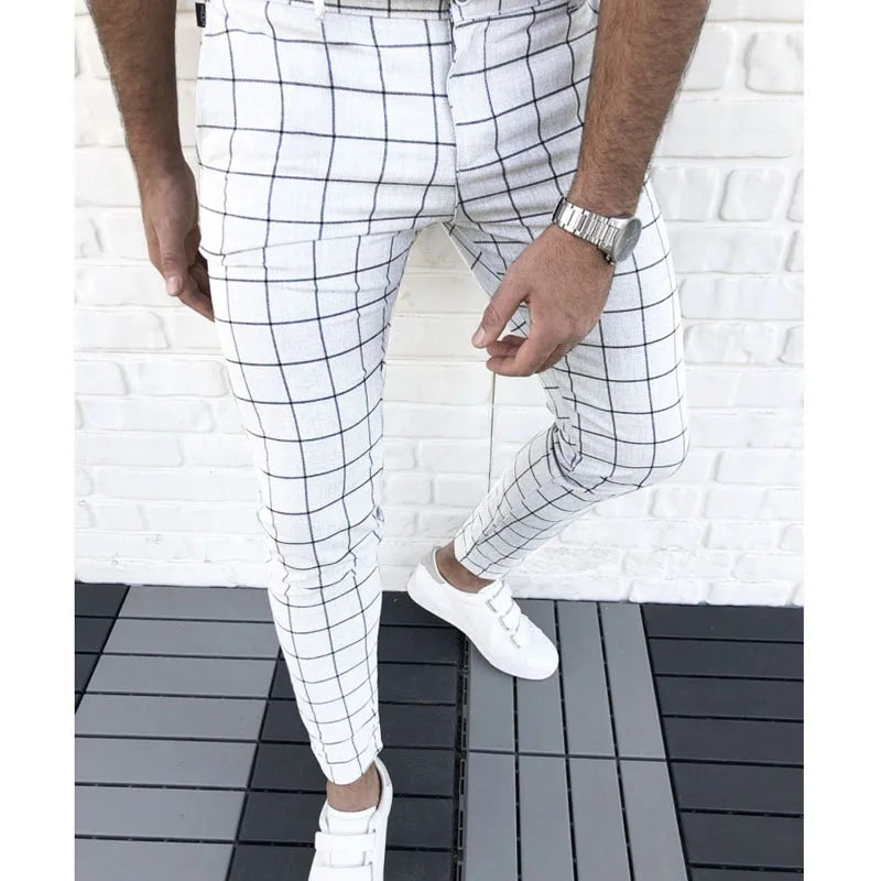 2025 New Spring Men Pencil Pants Fashion Plaid Print Trousers Male Slim Fit Business Clothes Young Men Skinny Pants MY908