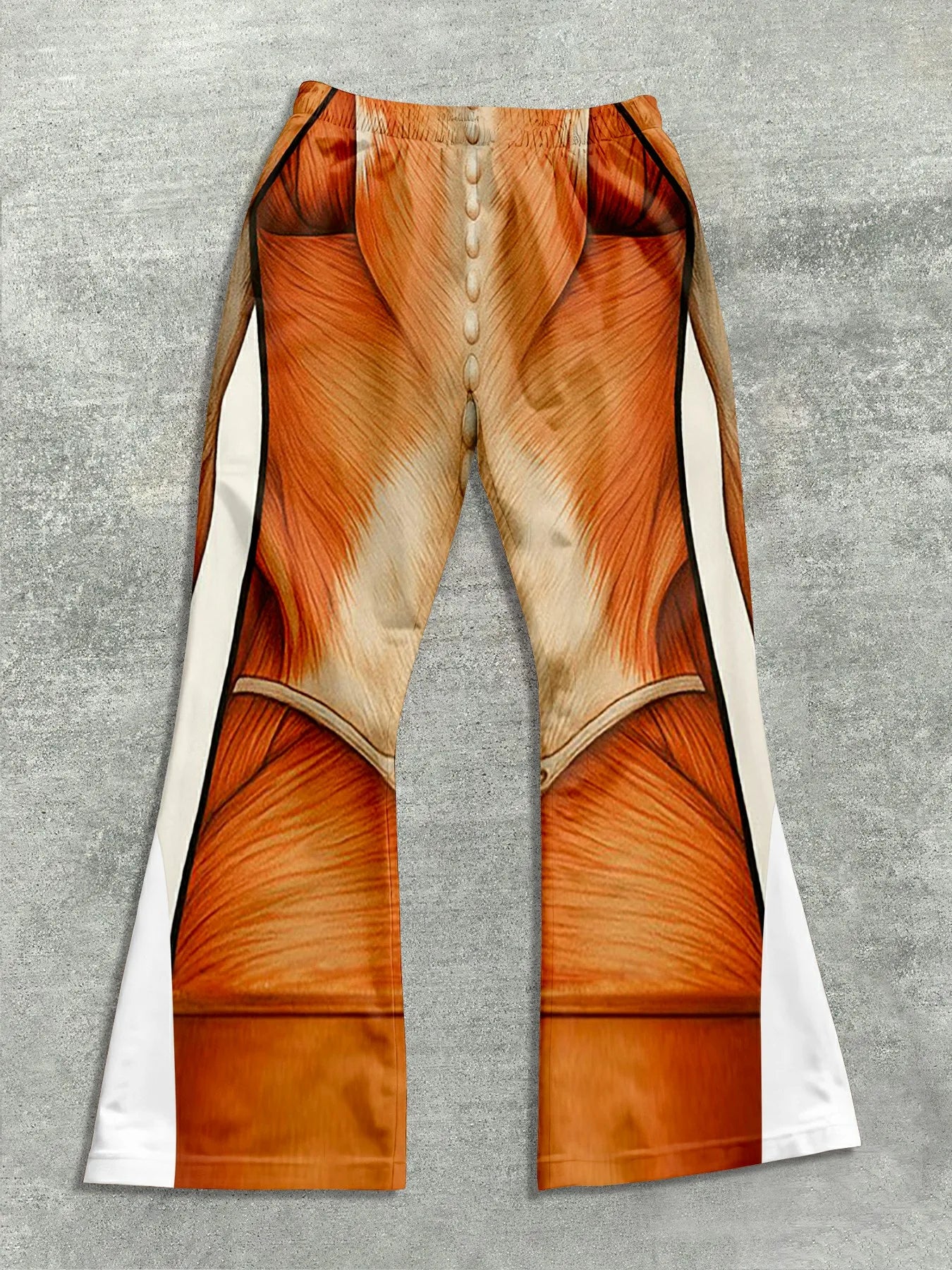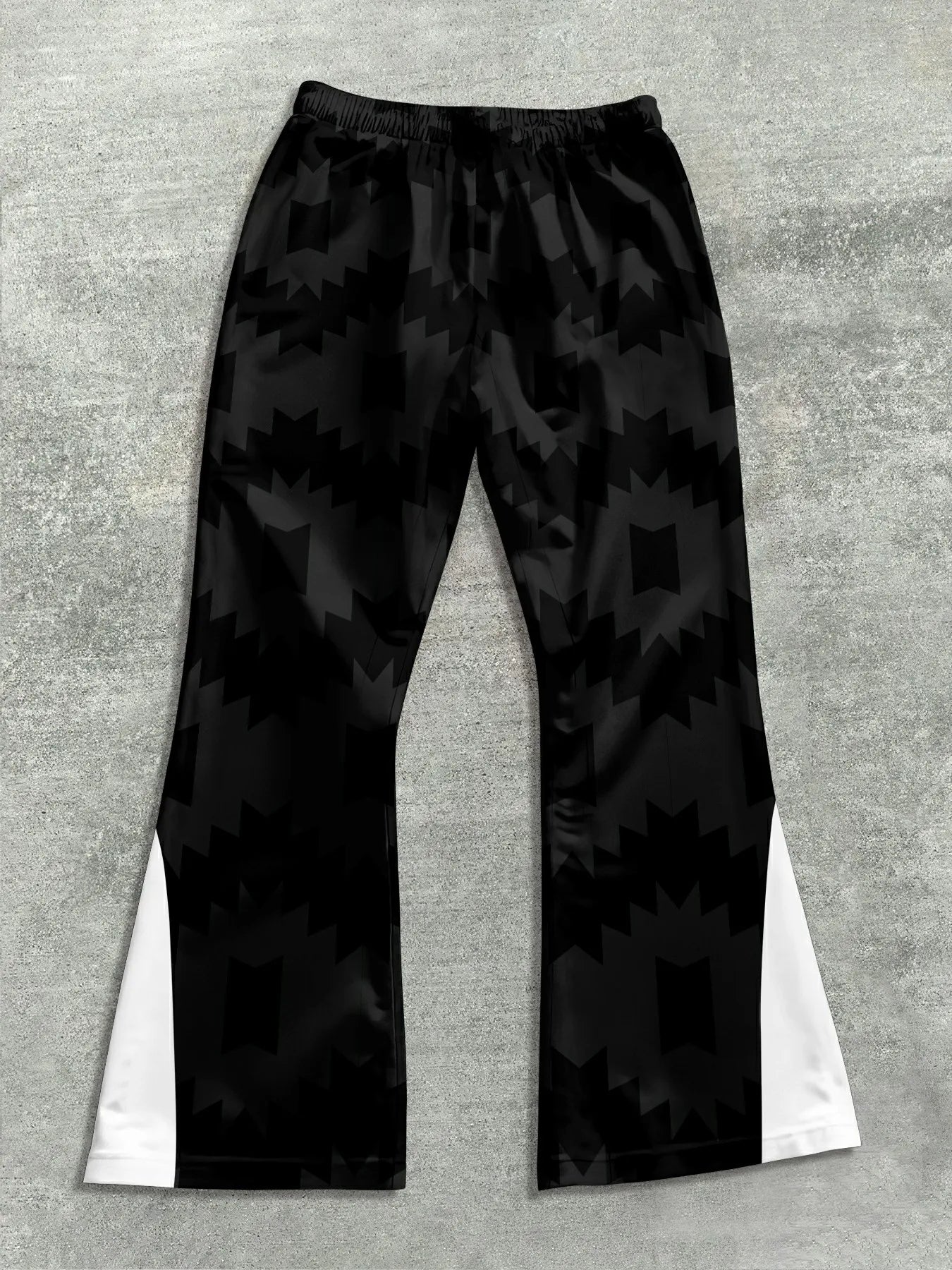 Men's Casual Street Style Trendy Cross Print Fashionable Slightly Flared Black and White Color-Block Design Sweatpants Men Pants