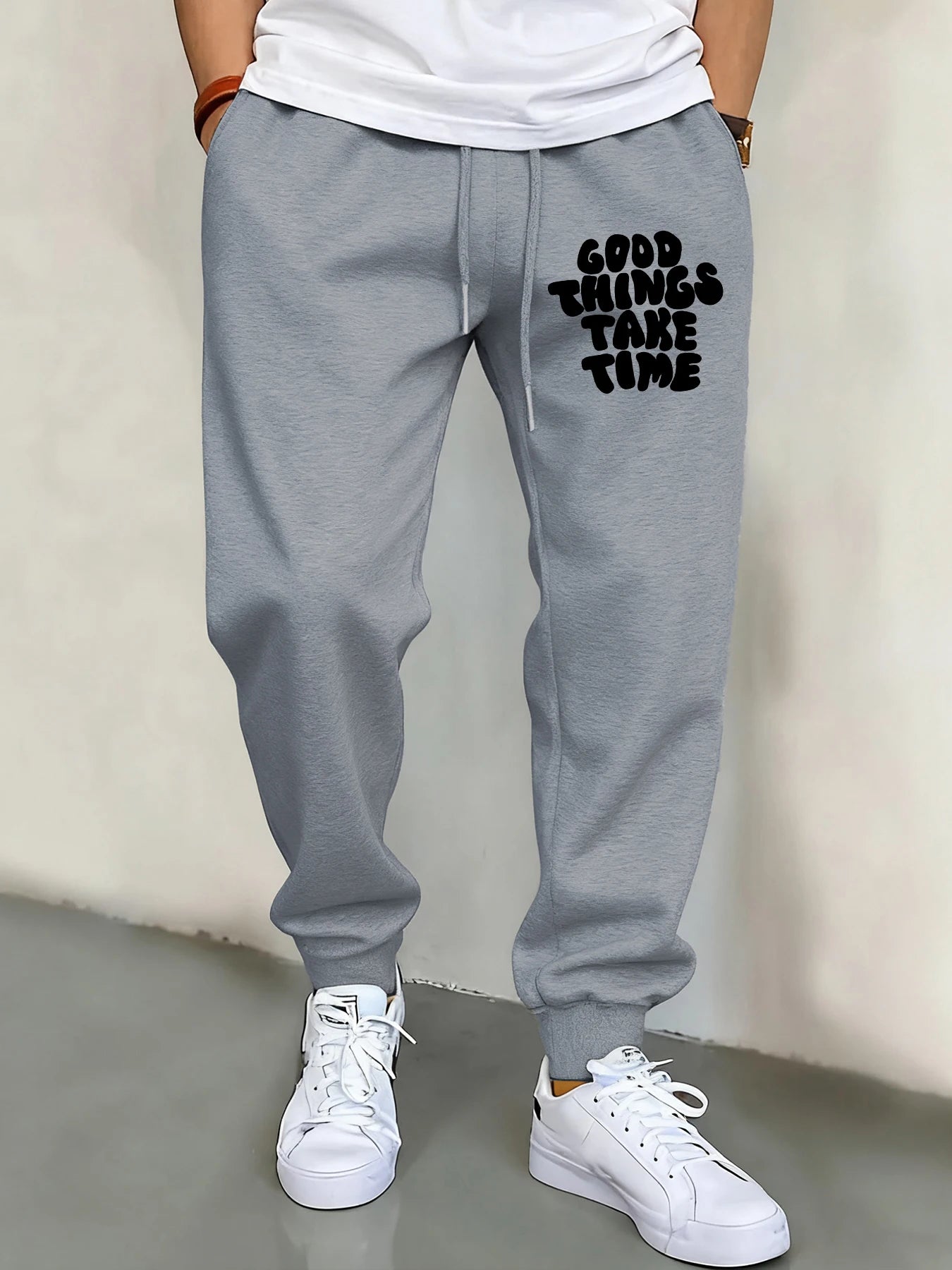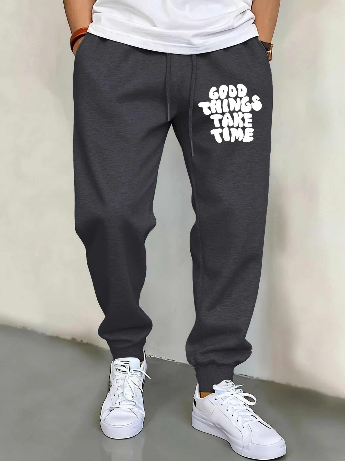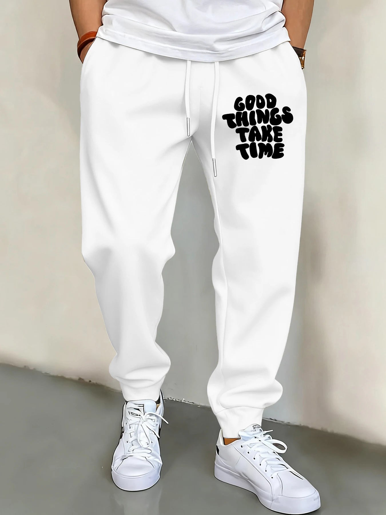 Good Thing Take Time Print Men Basics Pants Hip Hop Multicolor Sweatpants Pocket Autumn Long Pant Unisex Warm Fleece Clothing