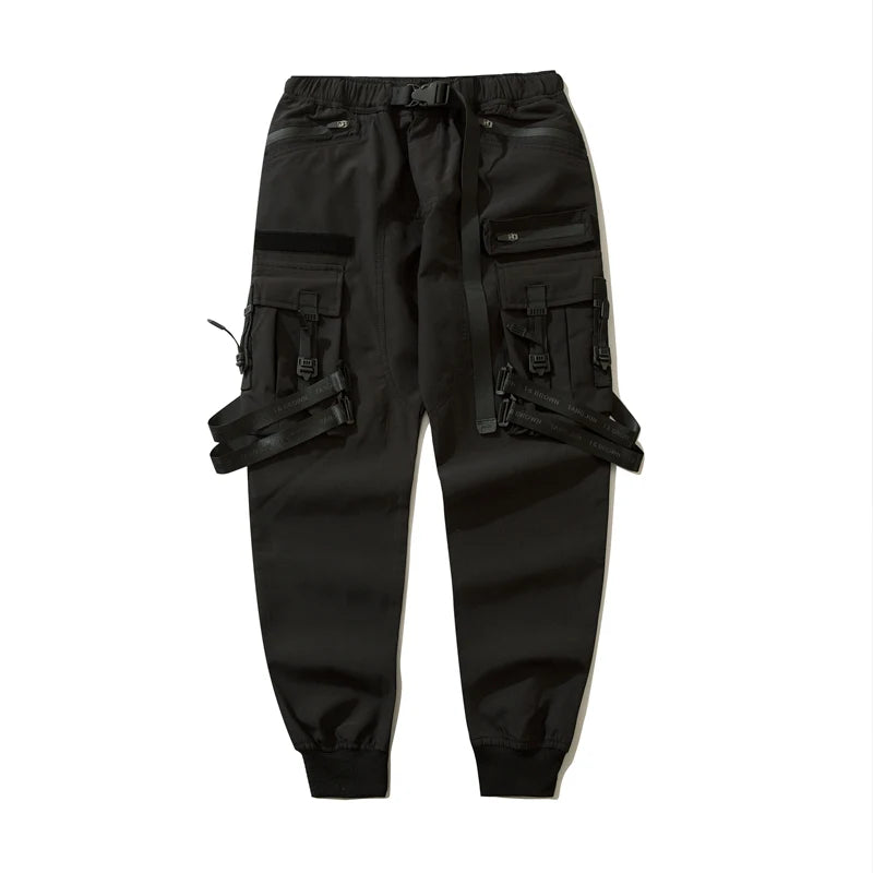 Hip Hop Tactical Cargo Pants Men Ribbons Joggers Trousers 2023 Spring Functional Elastic Waist Fahsion Streetwear Pant