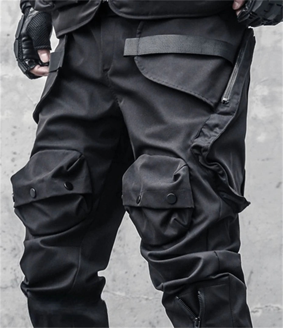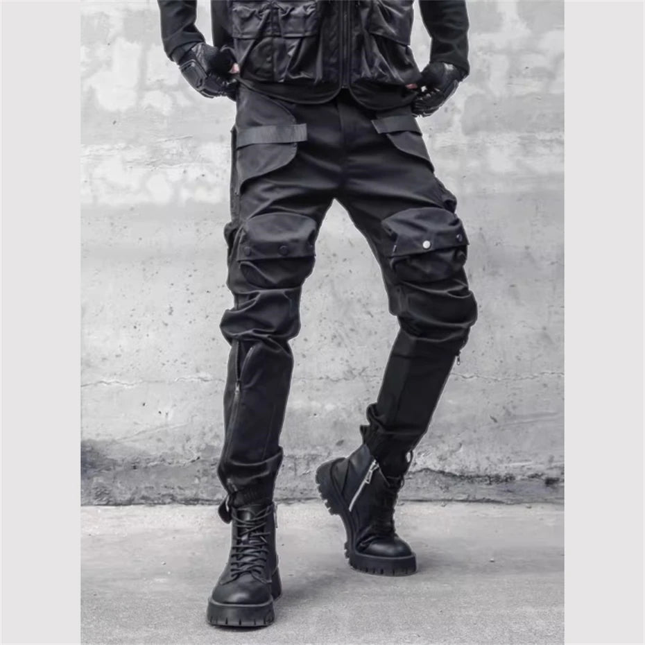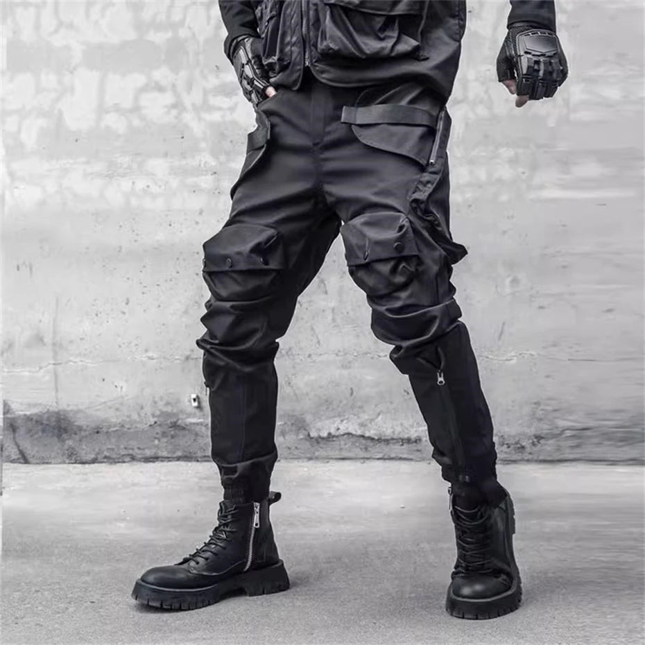 Men Y2K Cargo Pants Zipper Pocket Tactical Techwear Ninja Jogger Pants Black Fashion Streetwear Pants Punk Sweatpants Trousers