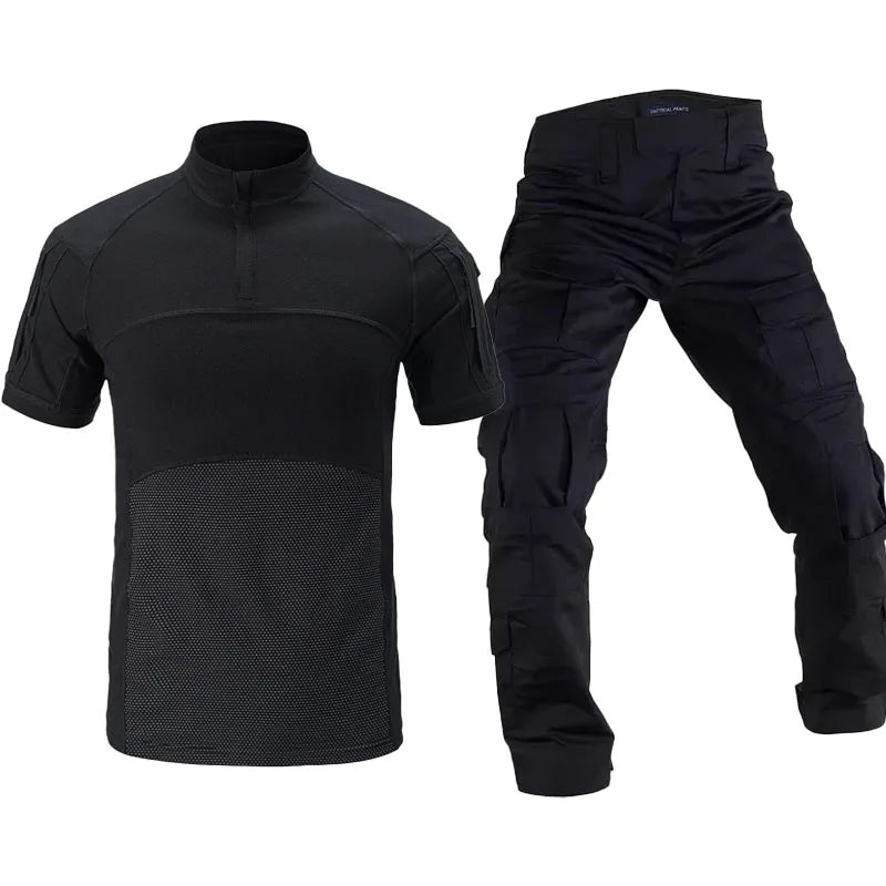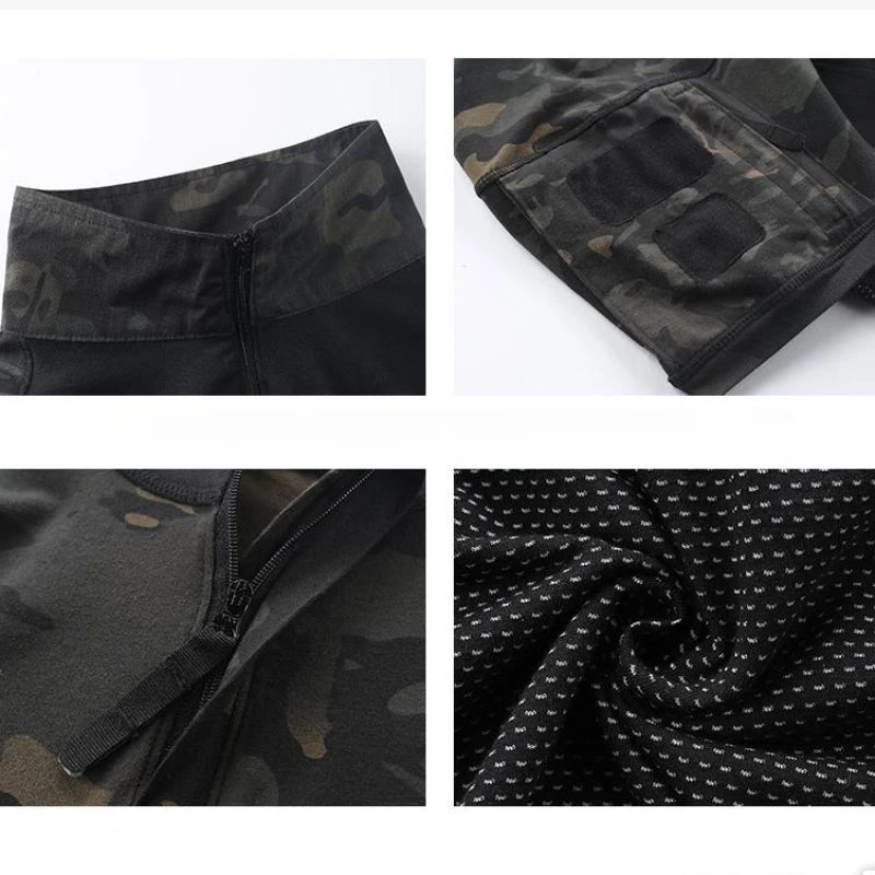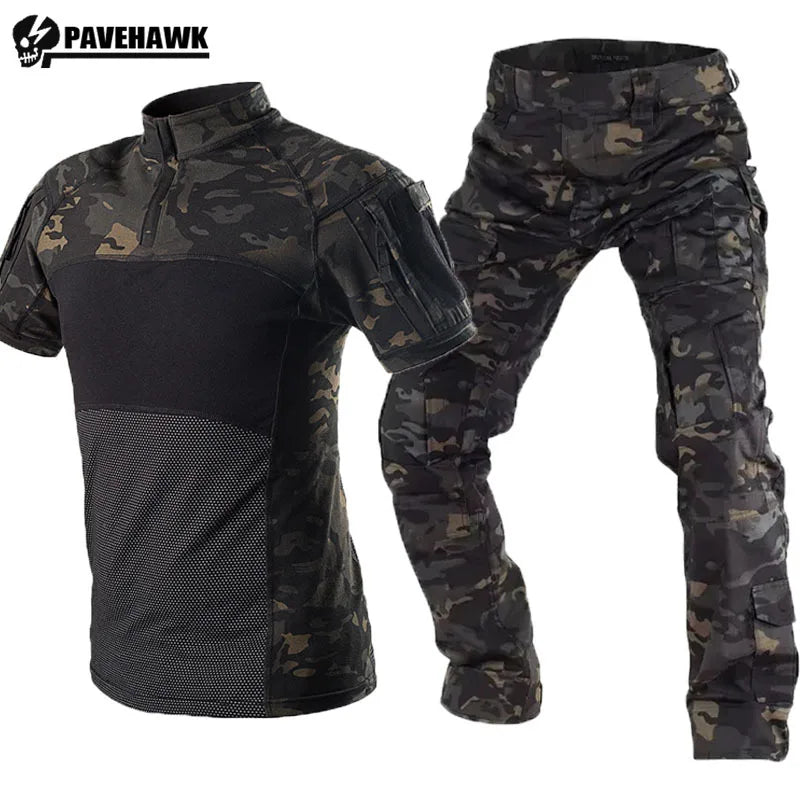 Waterproof Training Set Mens Tactical Camo Patchwork T-shirt+Durable Multi Pockets Overalls Combat Uniform Summer Hunting Suit
