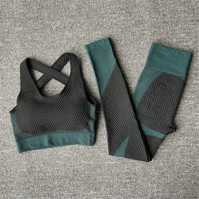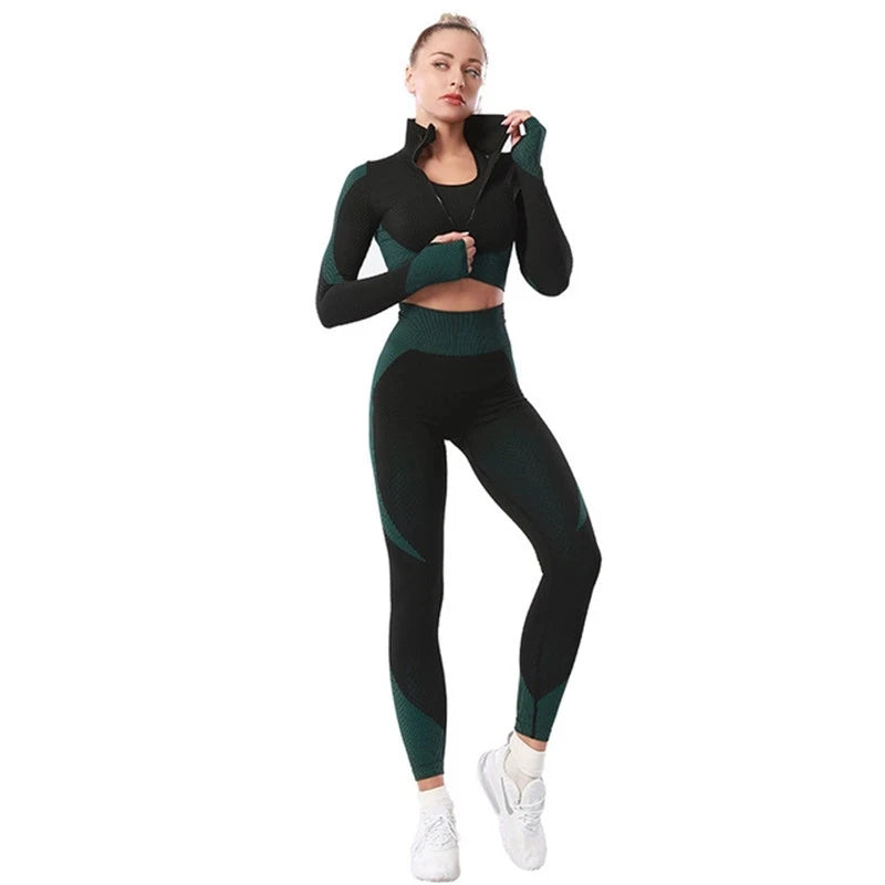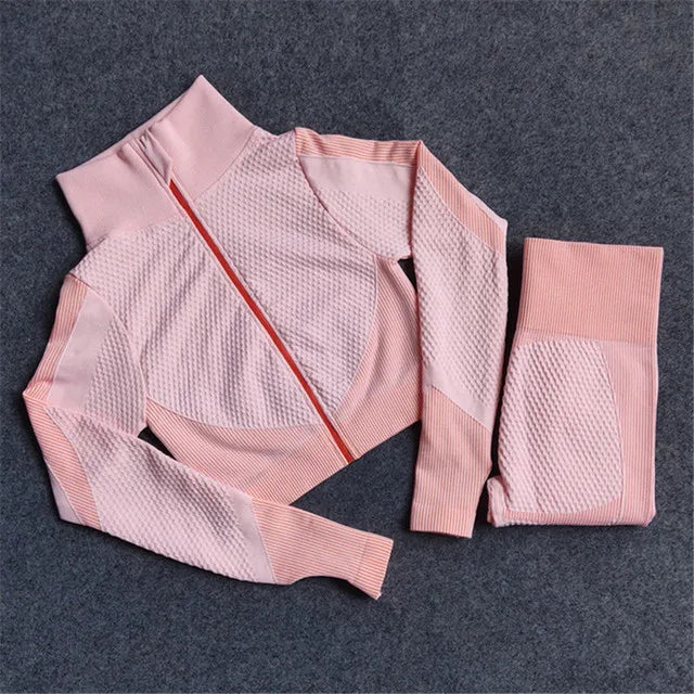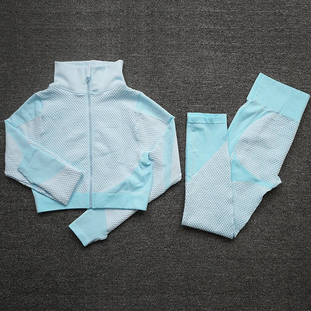 Conjunto de yoga sin costuras de 2 o 3 piezas, ropa deportiva para gimnasio, traje de yoga para mujer, mallas de entrenamiento para mujer, ropa deportiva, traje de entrenamiento
