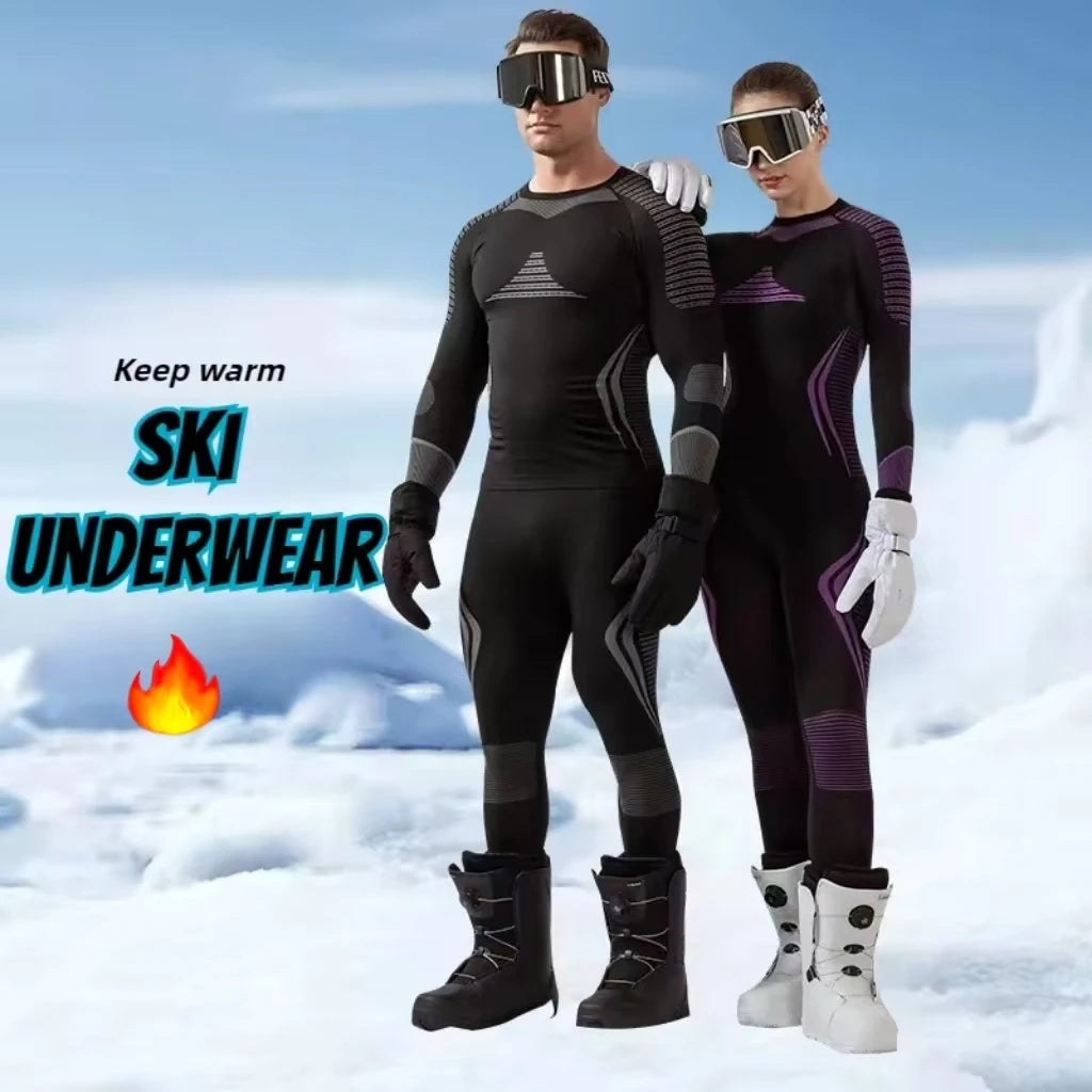 Men Women Ski Thermal Underwear Sets Quick Dry Functional Compression Tracksuit Tight Snowboarding Tops and Pants Adult