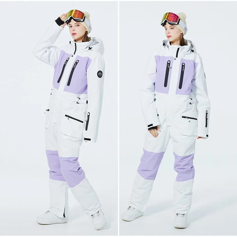 Skiing Jumpsuit Men Women One-piece Ski Suit Winter Outdoor Windproof Waterproof Ski Overall Snowboarding Suit Ski Jacket+Pants