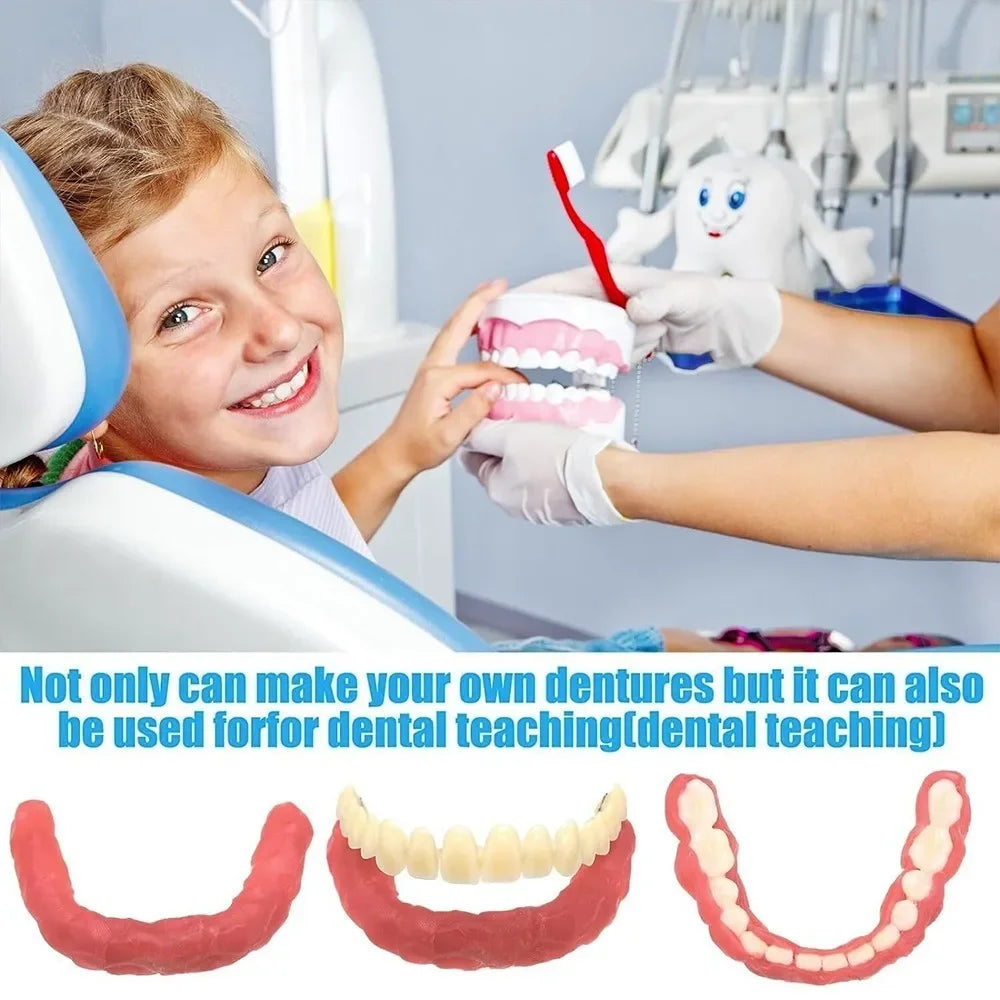 1Set Dentures Fake Teeth Braces Wax Strips DIY Kit Reusable Full/Partial Denture Top and Bottom Temporary Fake Tooth Easy Use