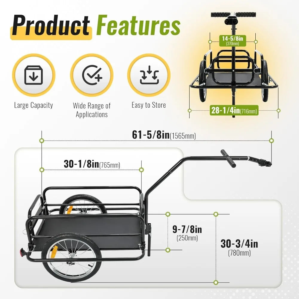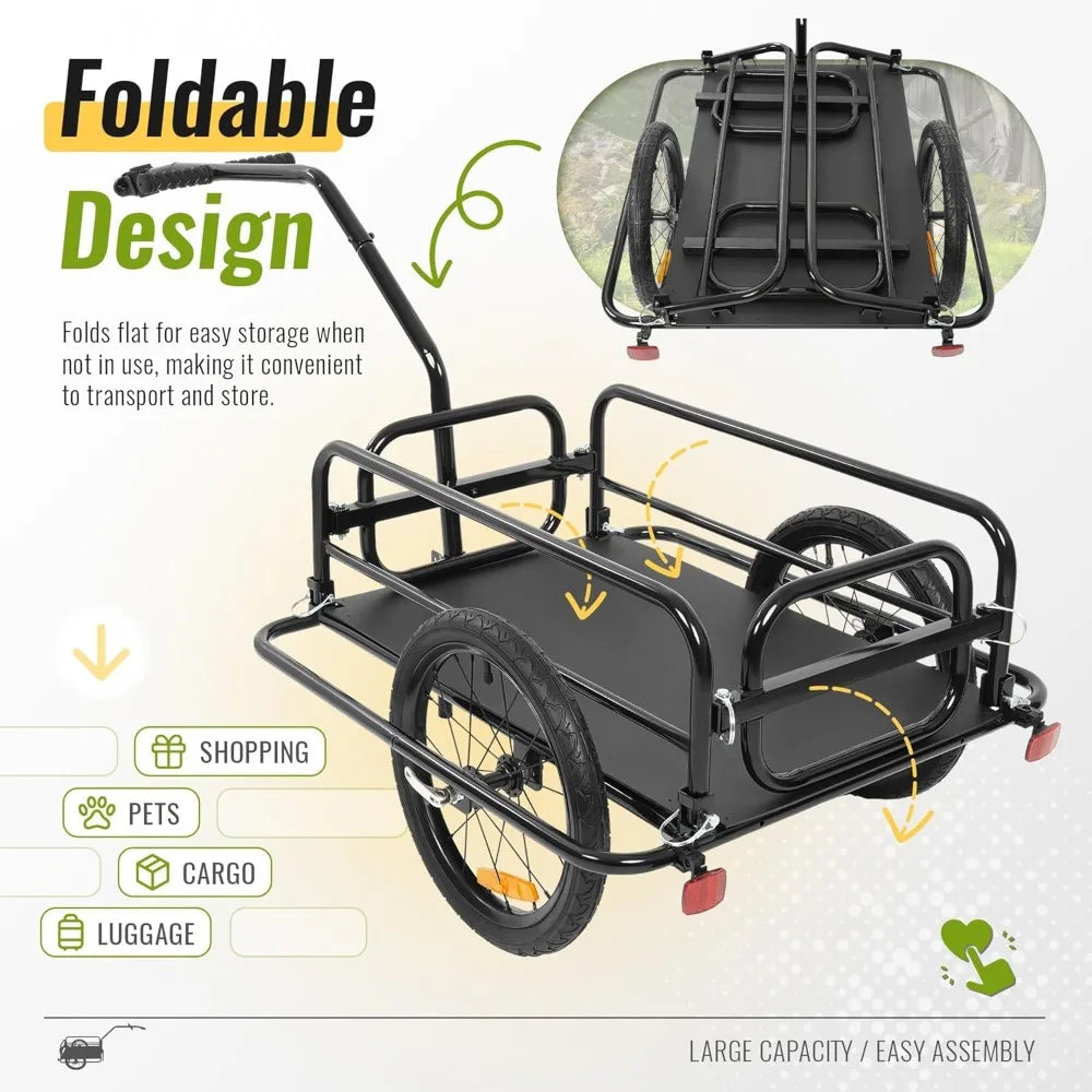 Heavy-Duty Storage Bicycle Trailer 88lbs Capacity,16IN Wheel Bike Wagon Cart,with Universal Hitch and Foldable Frame,Fit for Pet