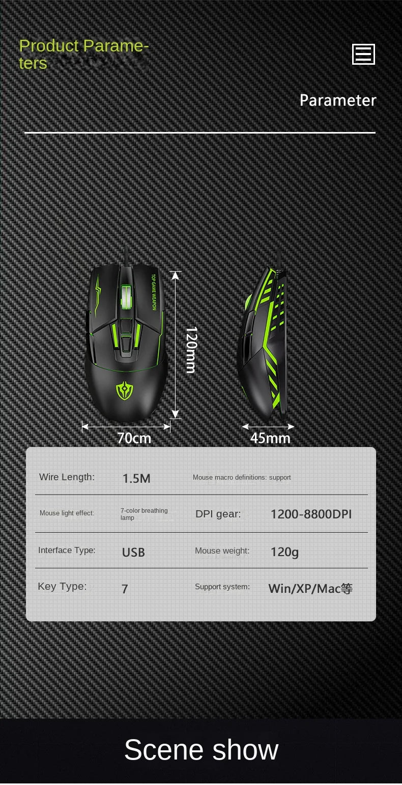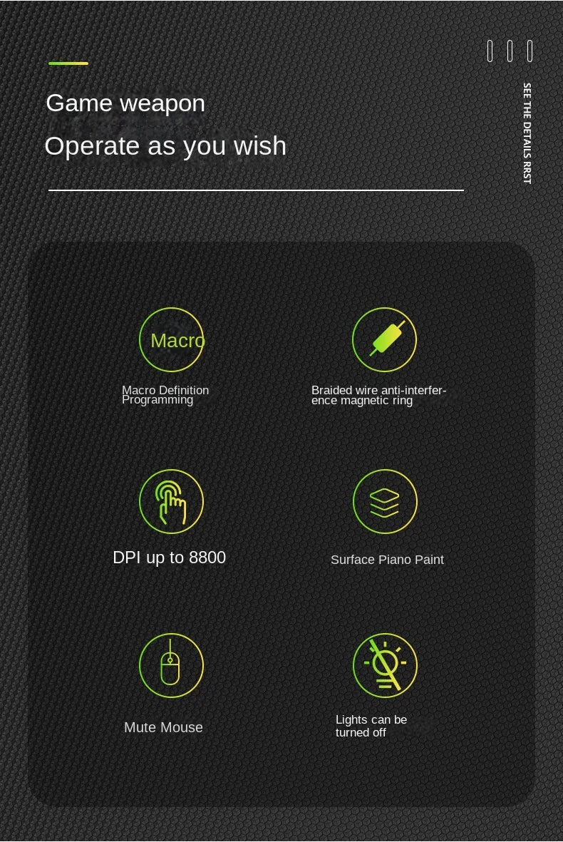 Macro Definition 7D Esports Gaming Mouse USB Right Hand RGB Backlit Can Be Turned off Heavy Duty Wired Stock Office Home LOL
