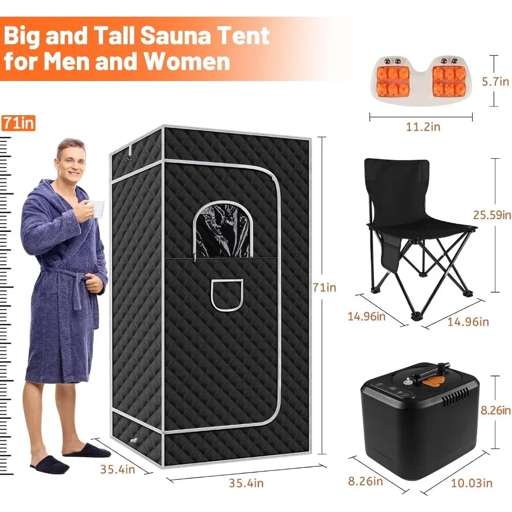 Portable Sauna Box,Steam Sauna Room for Home Use,Large Space Personal Steam Room Sauna Tent with 3.0 Liter Steamer,Folding Chair