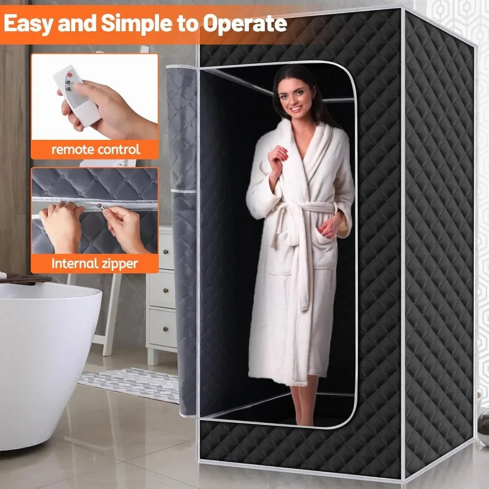 - SAFETY AND DURABILITY:The home sauna room comes with a safety valve that is resistant to high temperatures up to 500 degrees, has a leak-proof and explosion-proof automatic power-off effect, and refuses to be scalded; the zipper of the sauna box adopts a bi-directional design, which can withstand a pulling force of 600N/60kgf, and it is sturdy and does not break.