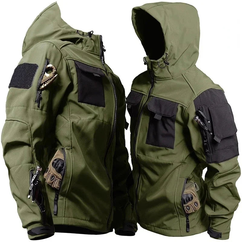 Military Soft Shell Sets Men Waterproof Hooded Tactical Jackets+Multi-pocket Cargo Pants 2 Pcs Suits Winter Fleece Warm Army Set