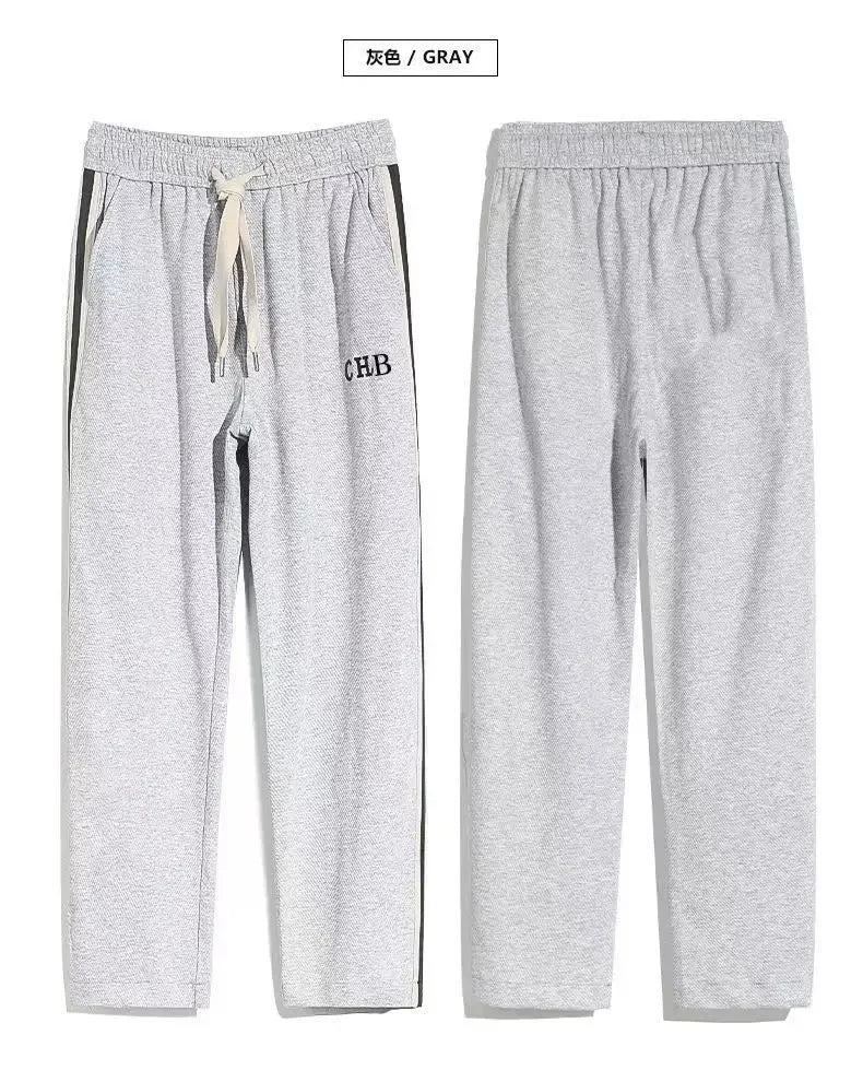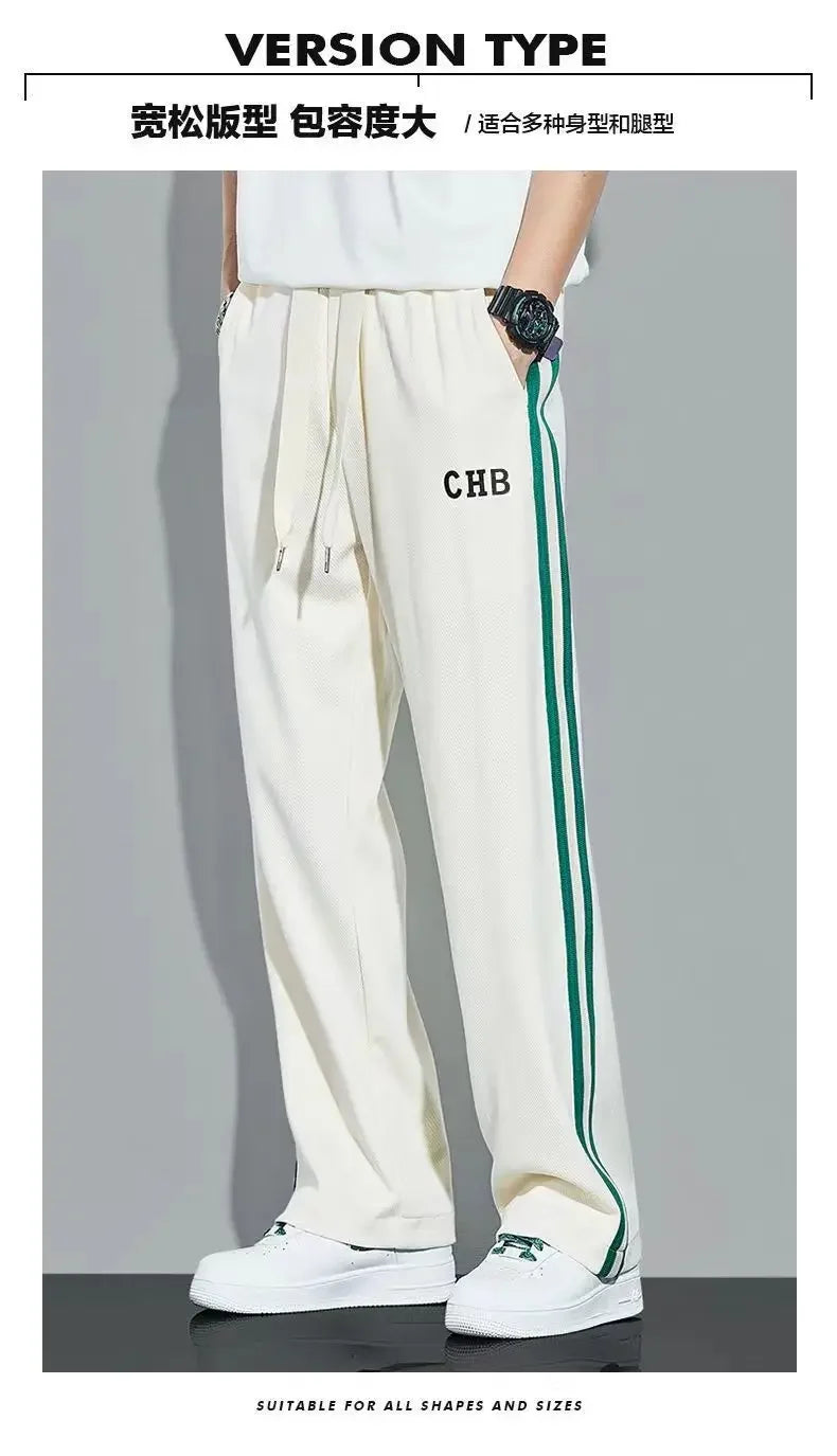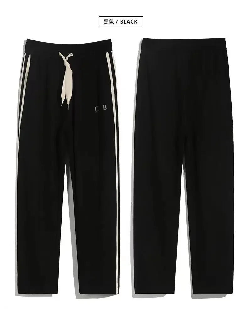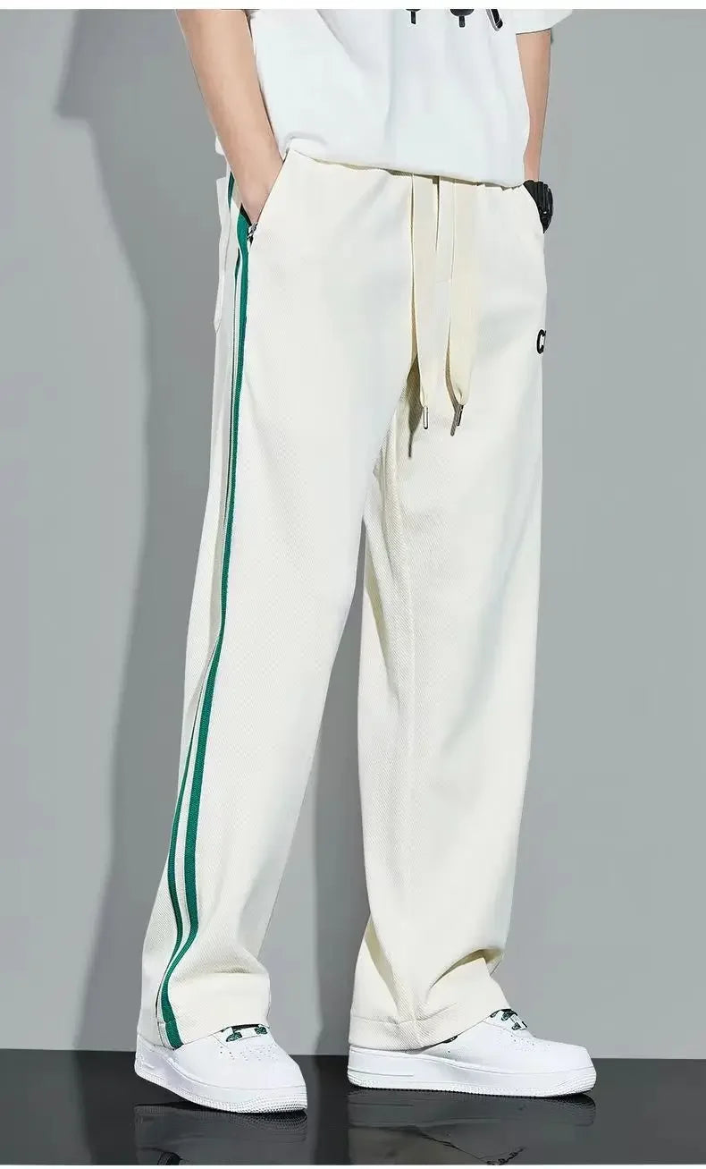 Fleece Thick Warm Straight Casual Pants Men Autumn Winter New Patchwork Striped Drawstring Waist Loose Versatile Sports Trousers