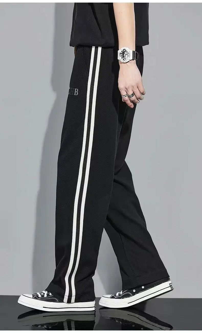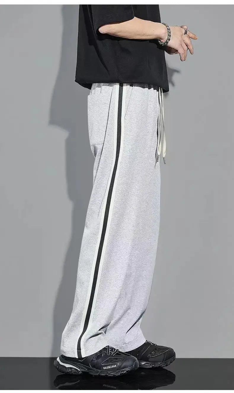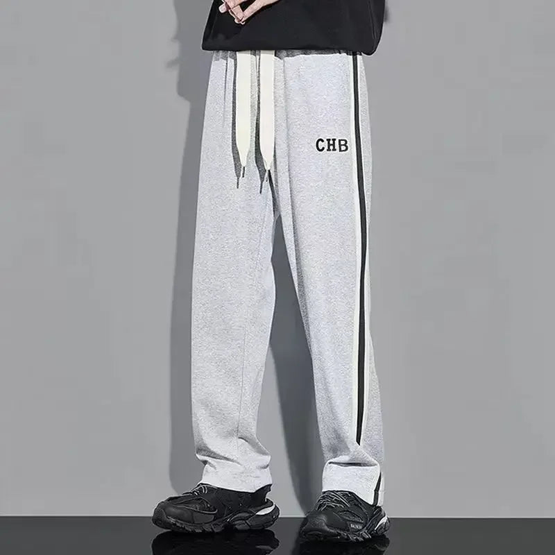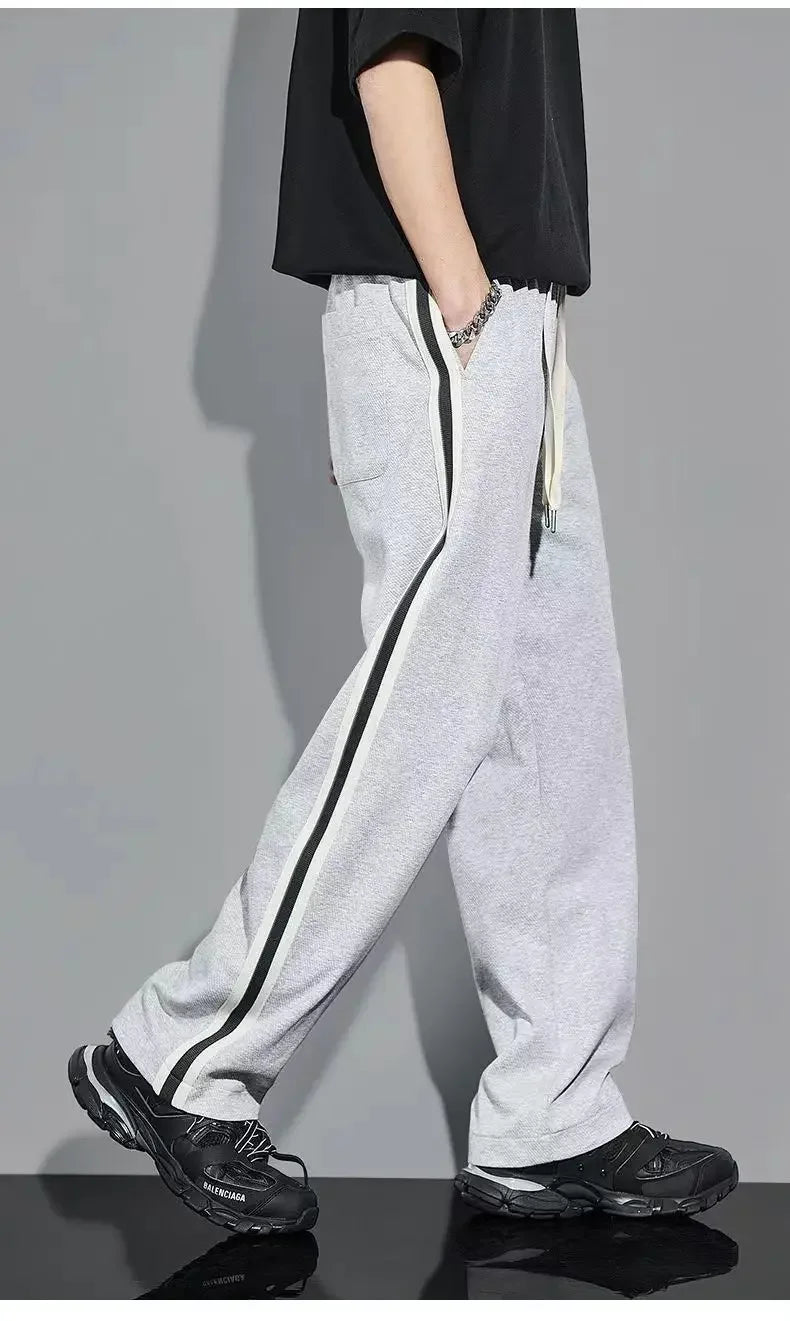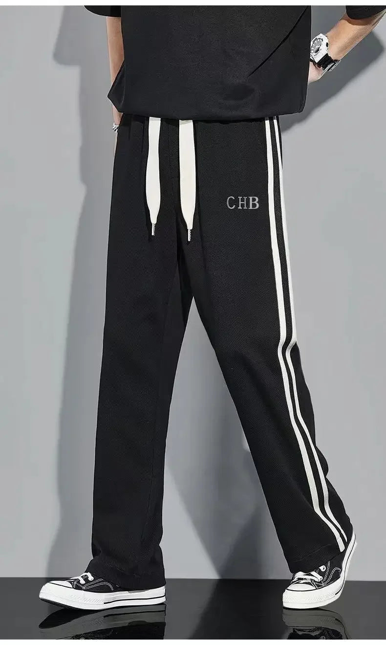 Fleece Thick Warm Straight Casual Pants Men Autumn Winter New Patchwork Striped Drawstring Waist Loose Versatile Sports Trousers