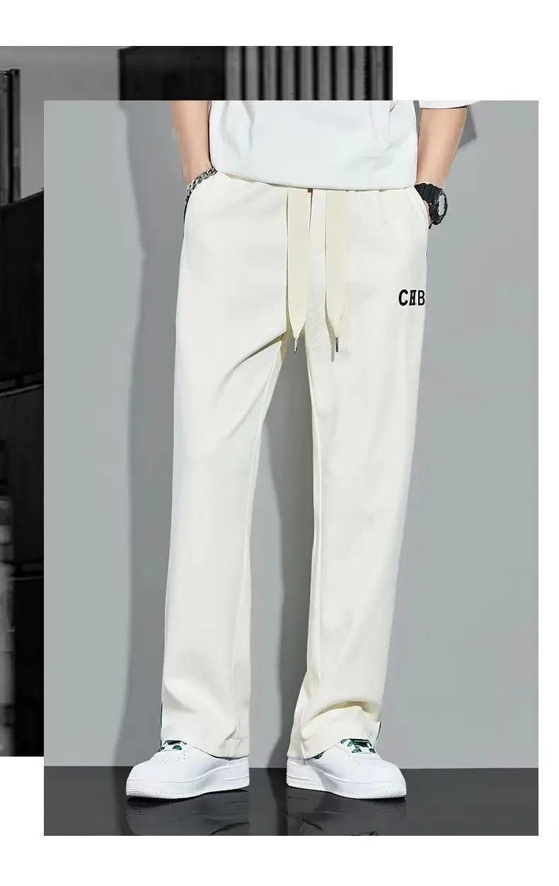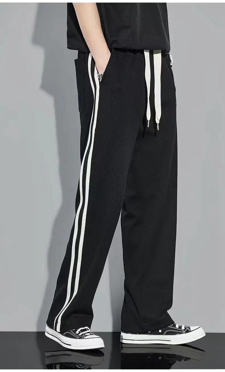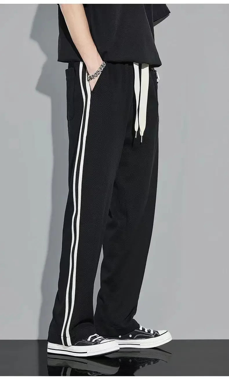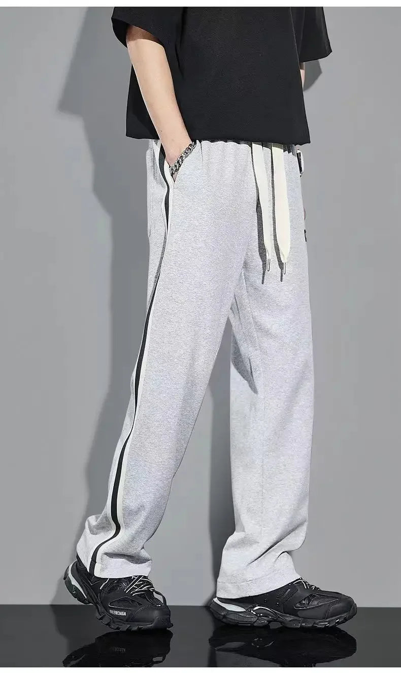 Fleece Thick Warm Straight Casual Pants Men Autumn Winter New Patchwork Striped Drawstring Waist Loose Versatile Sports Trousers