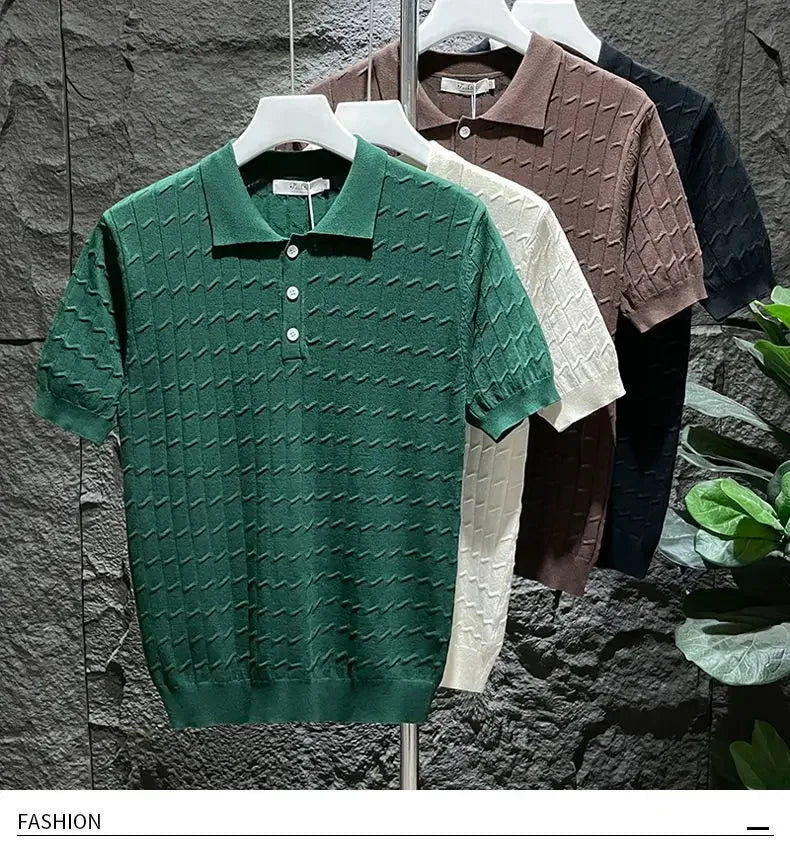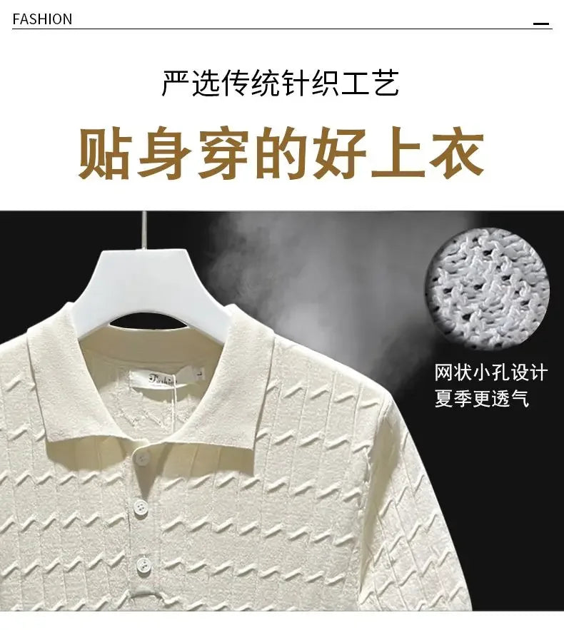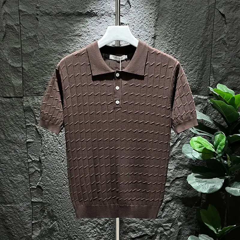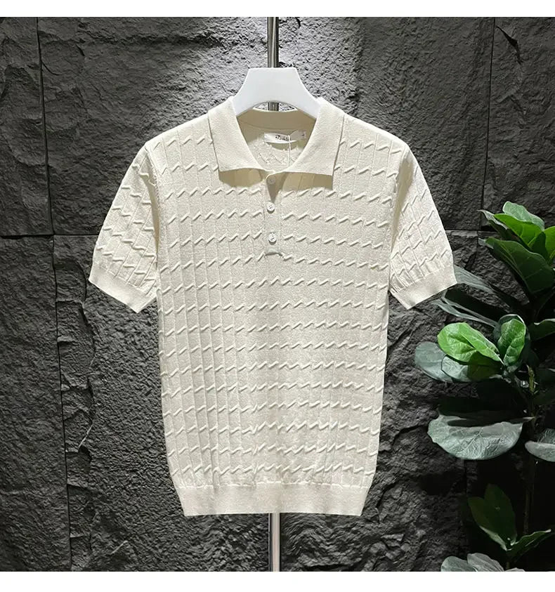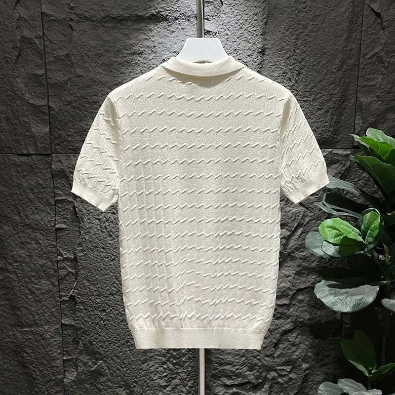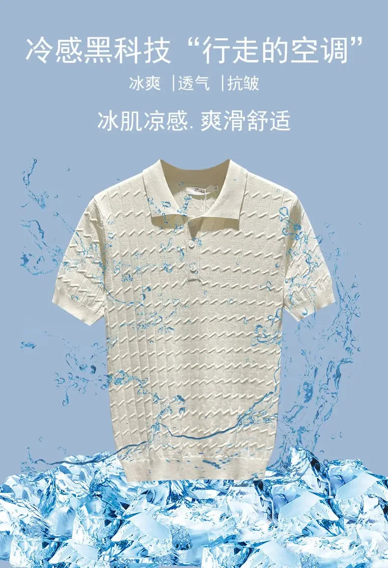 Ice Silk Short-sleeved Men's Cool T-shirt Slim Lapel Draping Handsome Street Style