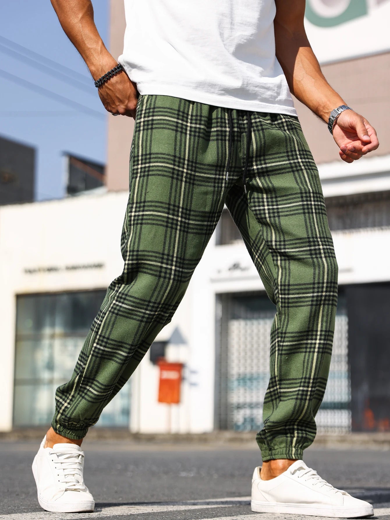 Men's Plaid Print Cuffed Casual Trousers Comfortable Sleepwear Pajamas Pants for Relaxed Style