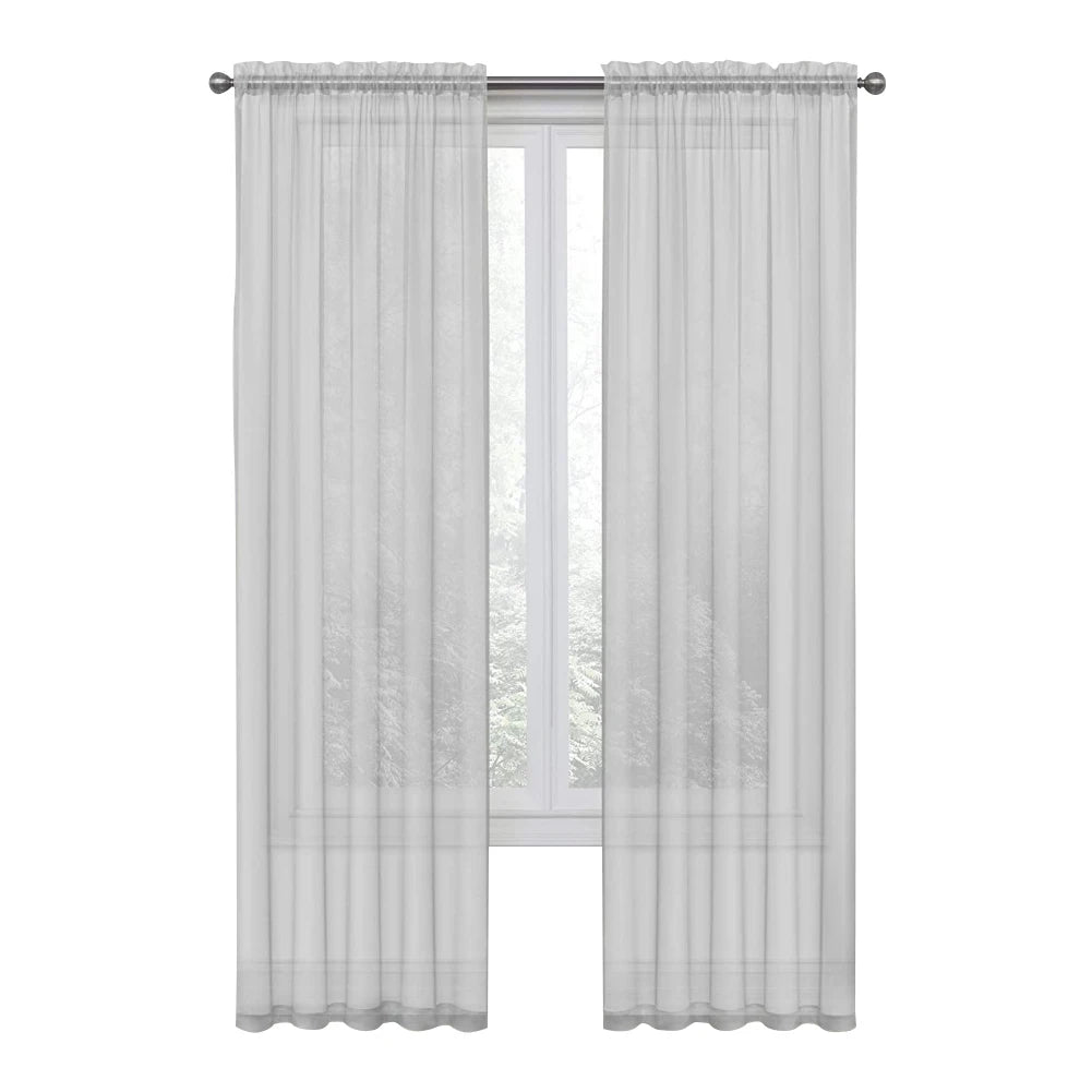 Soild Color Sheer Curtains Semi Transparent Voile Grommet Glass Screen Window Curtains for Living Dining Room Tulle Drapes