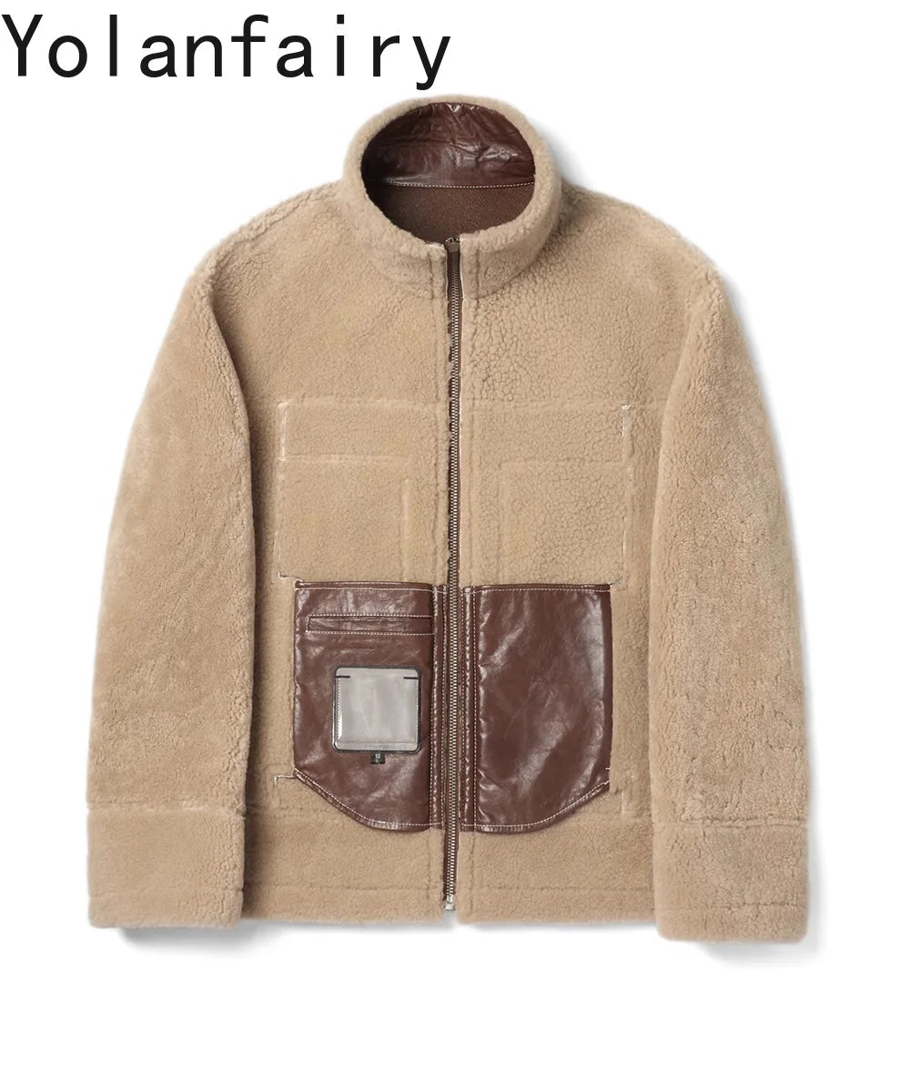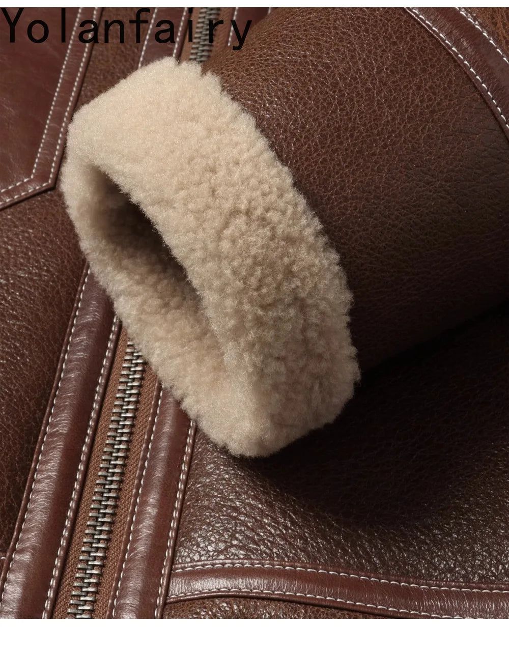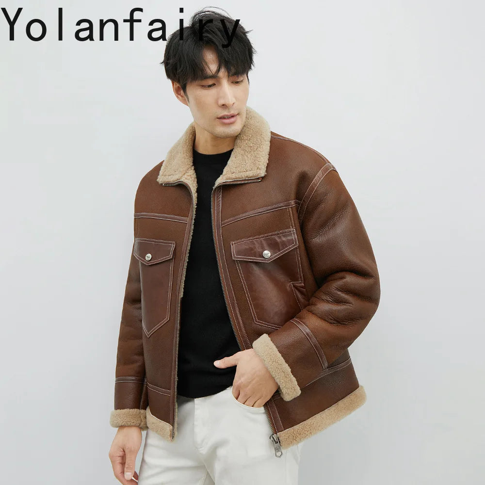 YOLANFAIRY Genuine Leather Jacket Mens Real Sheepskin Fur Winter Clothes Vintage Leather Jacket Men Fleece Jacket Men парка 2024